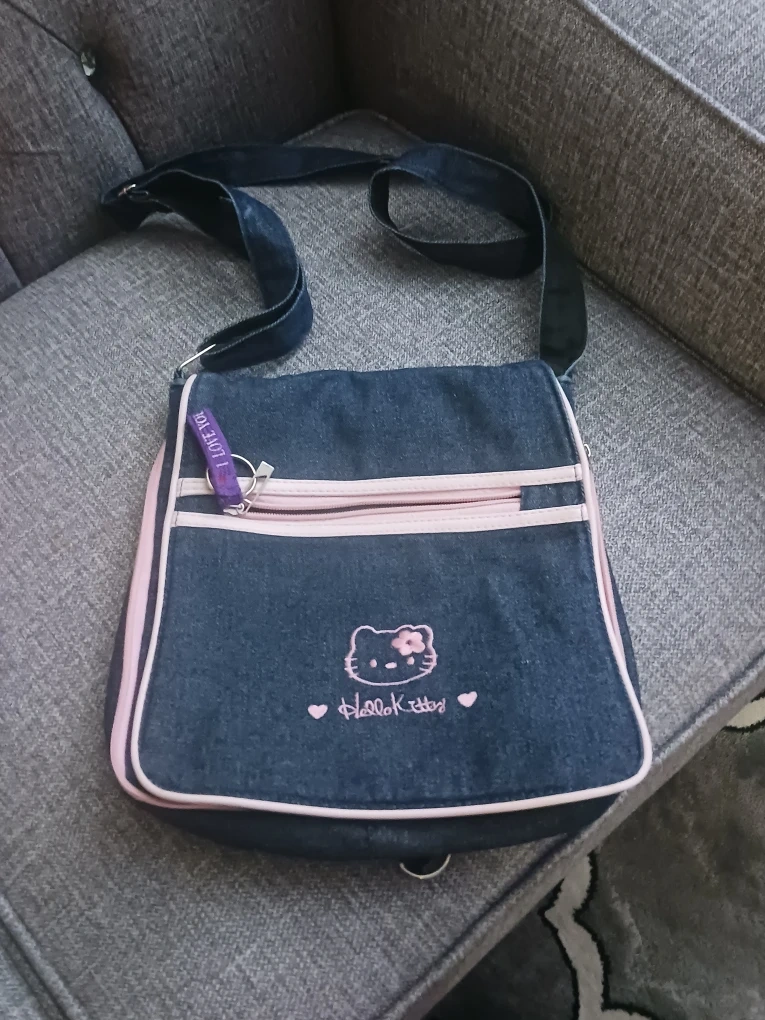 Super cute Hello Kitty denim shoulder bag! It's in great condition and features a sweet Hello Kitty design with pink accents. Perfect for carrying your essentials in style