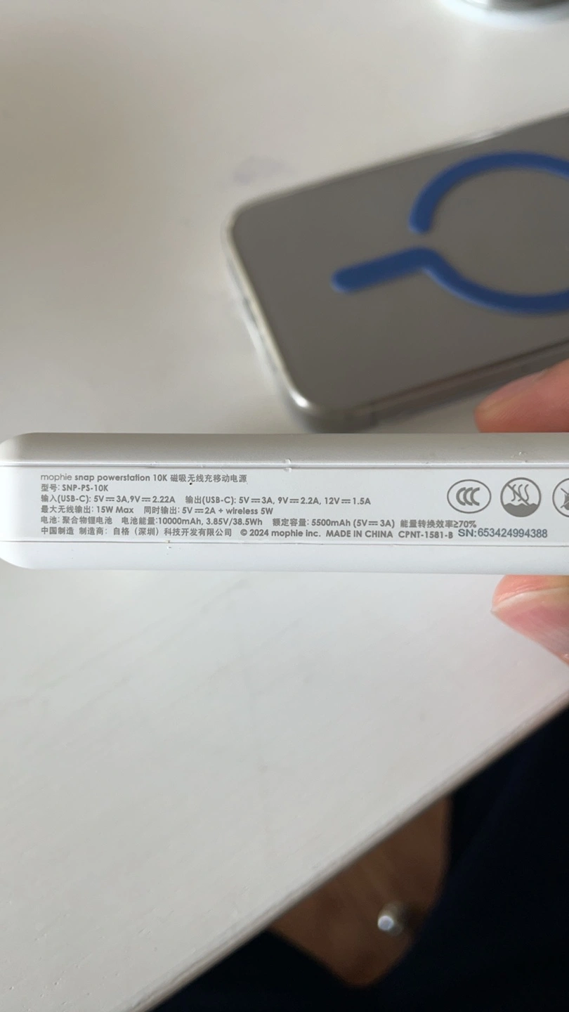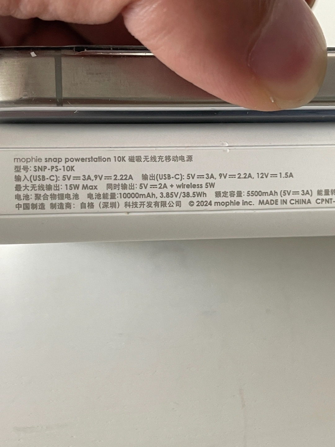 92Selling a Mophie Snap Powerstation 10K magnetic wireless charger. It's designed to magnetically attach to your phone for easy wireless charging on the go. This power bank has a capacity of 10000mAh and features a USB-C port for charging other devices.