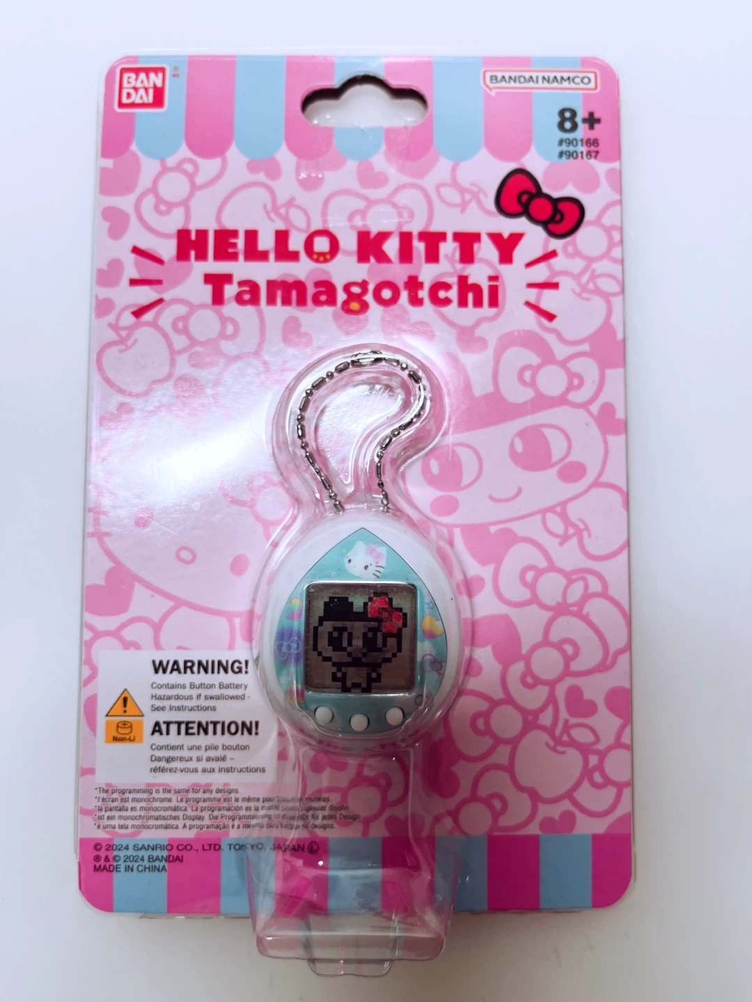 I'm selling a brand new Hello Kitty Tamagotchi by Bandai! It's still in its original packaging and ready for a new owner. This cute little virtual pet is perfect for anyone who loves Hello Kitty or enjoys collecting Tamagotchis. Made in China and copyrighted by Sanrio in 2024, this item is marked for ages 8+