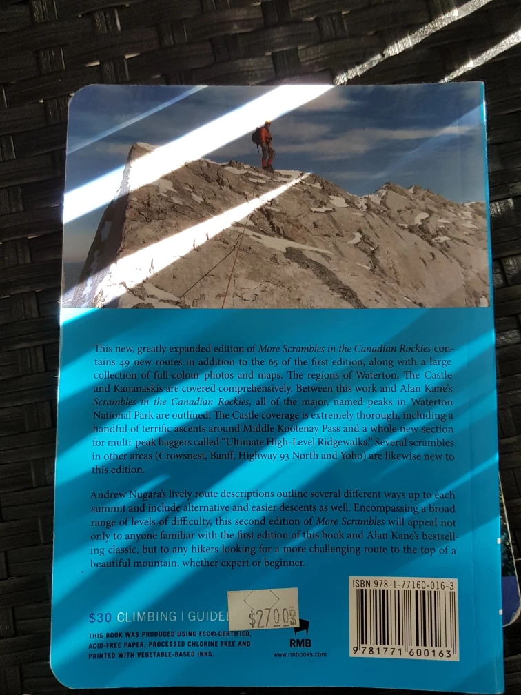 46Selling 'More Scrambles in the Canadian Rockies, 2nd Edition' by Andrew Nugara. This guidebook contains 49 new routes in addition to the 65 of the first edition, along with a large collection of full-colour photos and maps. It covers the regions of Waterton, the Castle and Kananaskis. A great resource for hikers looking for more challenging routes!