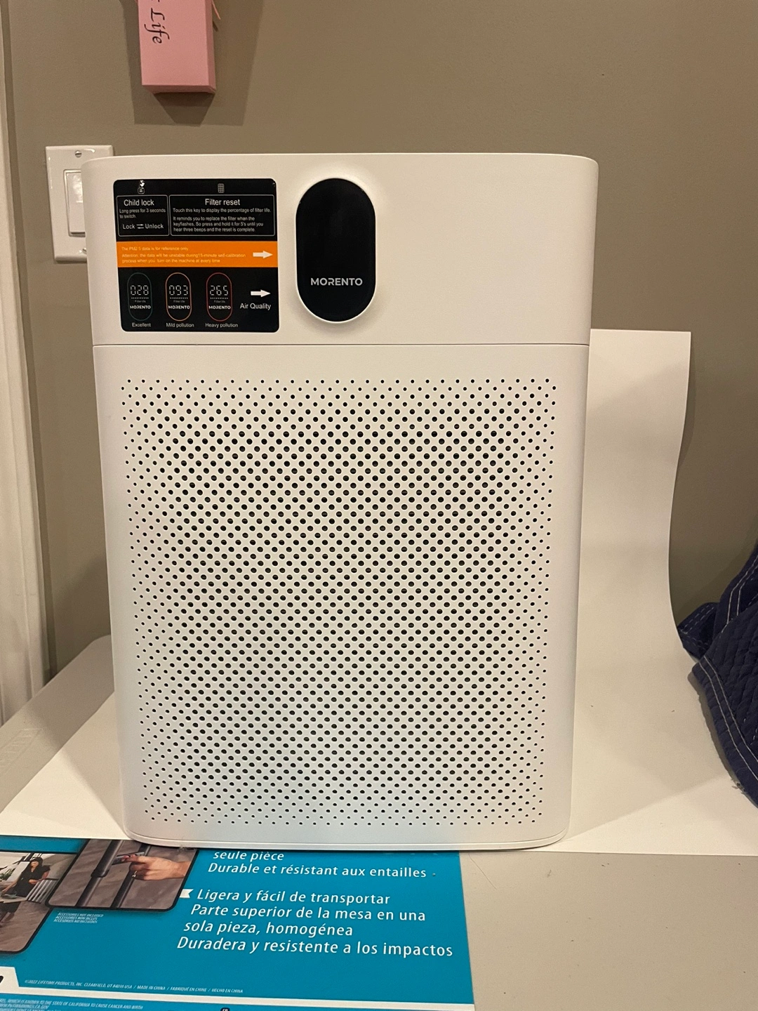 213Selling a Morento air purifier! It's in great condition but may need filter change soon and ready to help keep your air clean. It features an air quality monitor and filter reset indicator. Perfect for any room in your home!