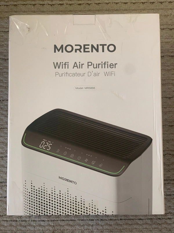 28A brand new Morento air purifier. It is in its original packaging. Wifi enabled, so you can control it from anywhere. Having clean air to breathe will create a calming and relaxed atmosphere for you.