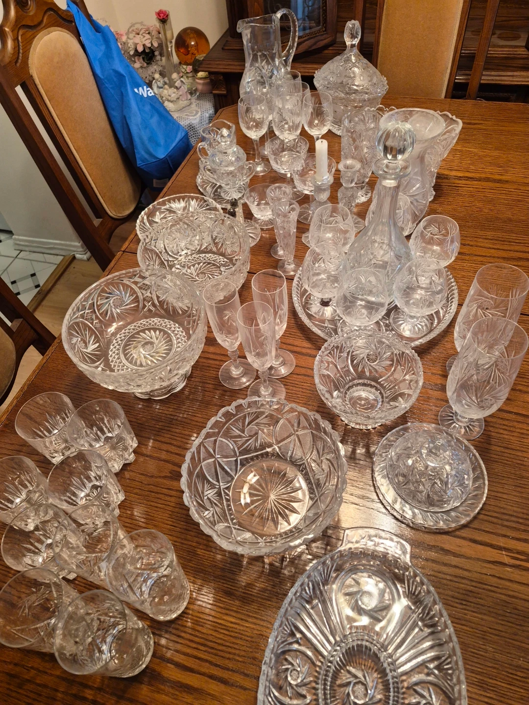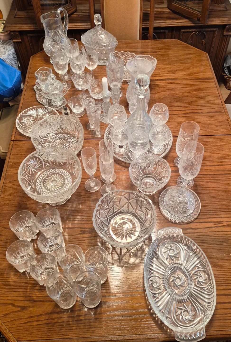 Large Crystal Set - Vintage Pinwheel Cut Glass