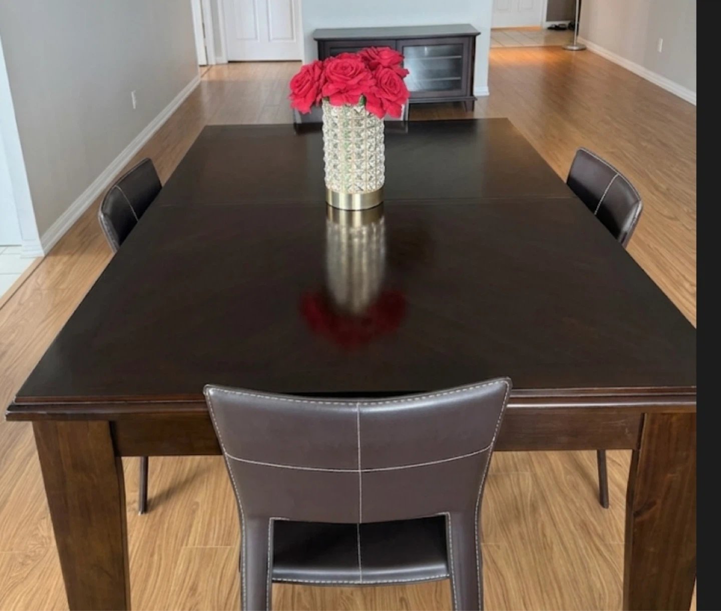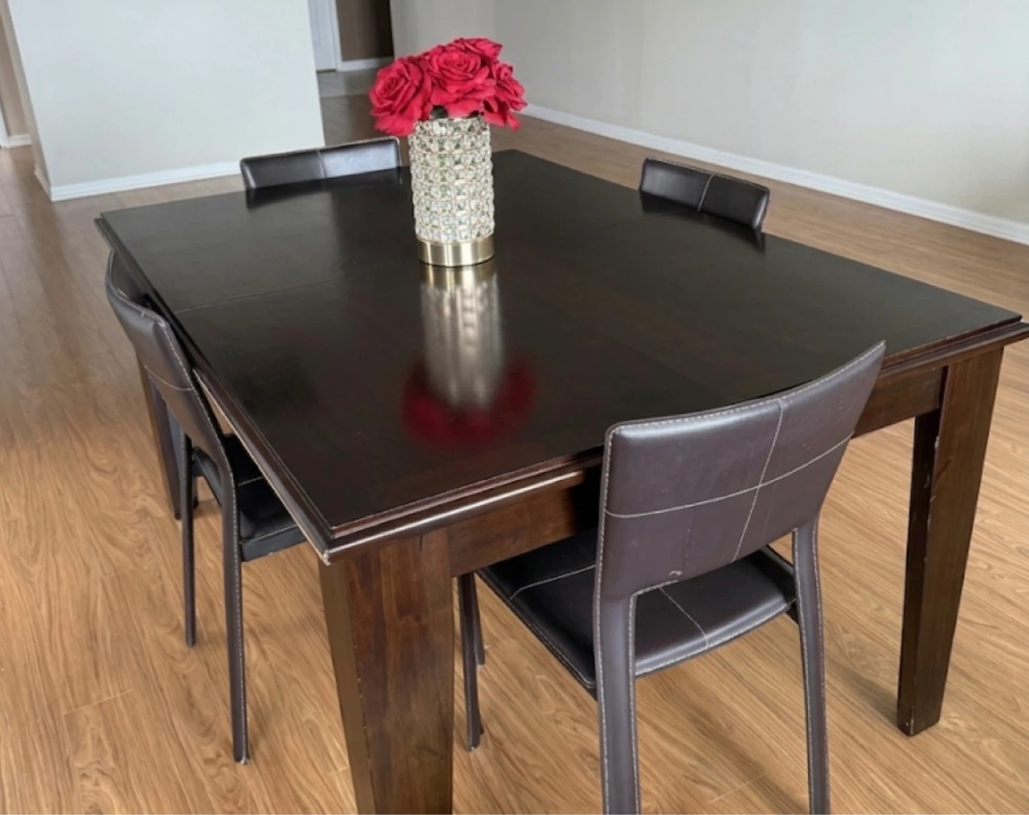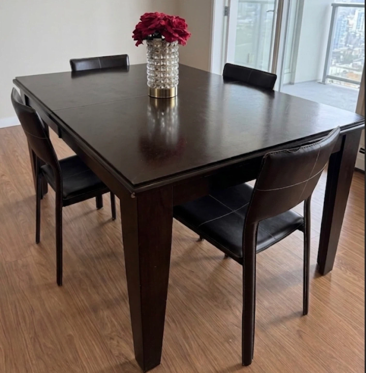 Downsizing and selling this high-quality, functional solid wood dining suite in a rich chocolate brown finish. This is a sturdy, well-made set—not a flat-pack or veneer piece!!