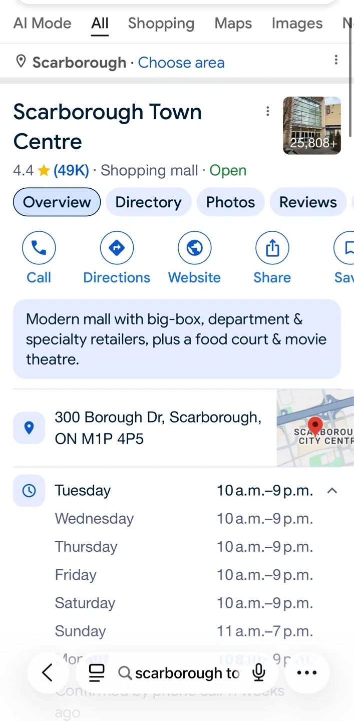 Meeting Location: Condo pickup near Scarborough Town Centre Mall.