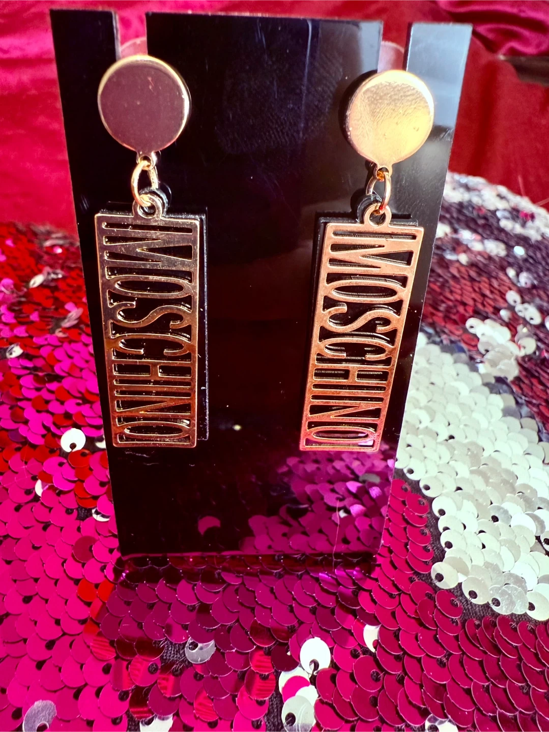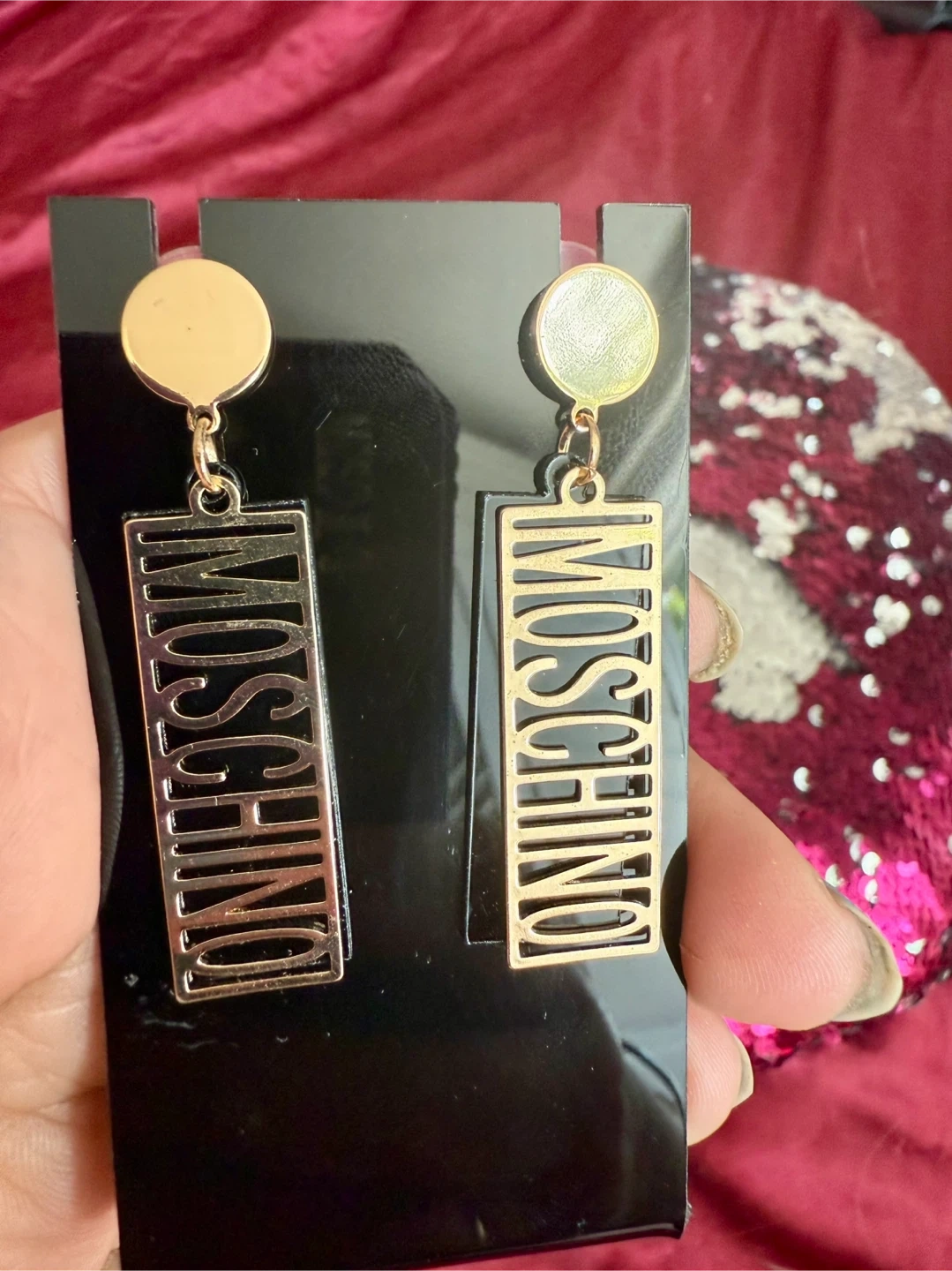 Here are some Moschino dangle earrings! They have the Moschino logo on them. Great for adding a bit of flair to any outfit