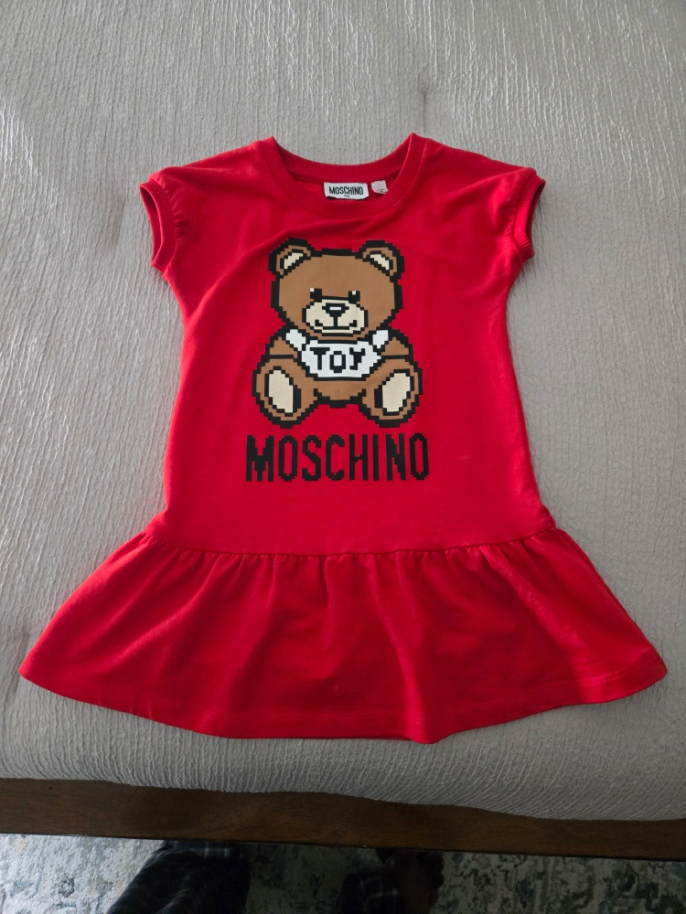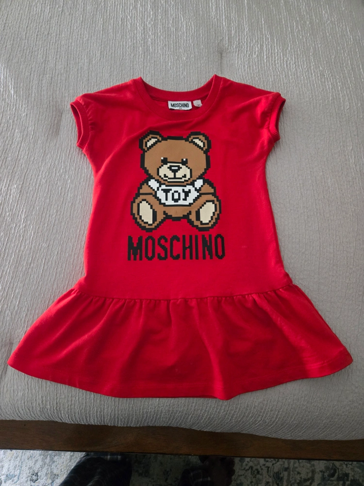 18This adorable Moschino Kids dress features a cute bear design on a vibrant red background. It's perfect for your little one!size 6 to 7