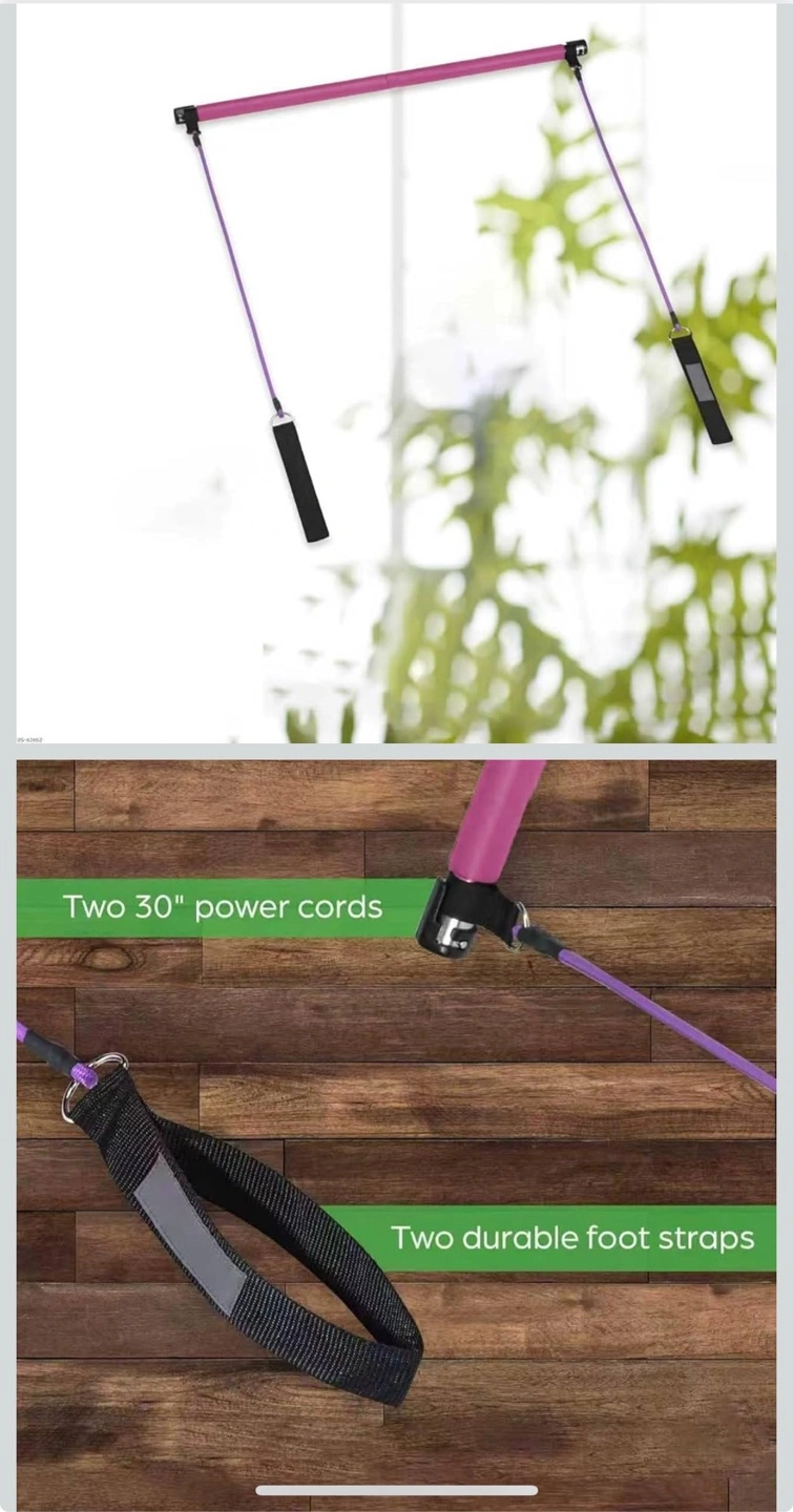 15Get a full body workout with this Mosdos Pilates Body Reformer Set! It includes a barbell and resistance band with foot loops. Key features: - Two 30" power cords - Two durable foot straps Originally bought for $19.99. PS:This is the final sale. (No exchanges or returns)100% brand new product. Excellent price. No bargaining accepted. First come, first served.