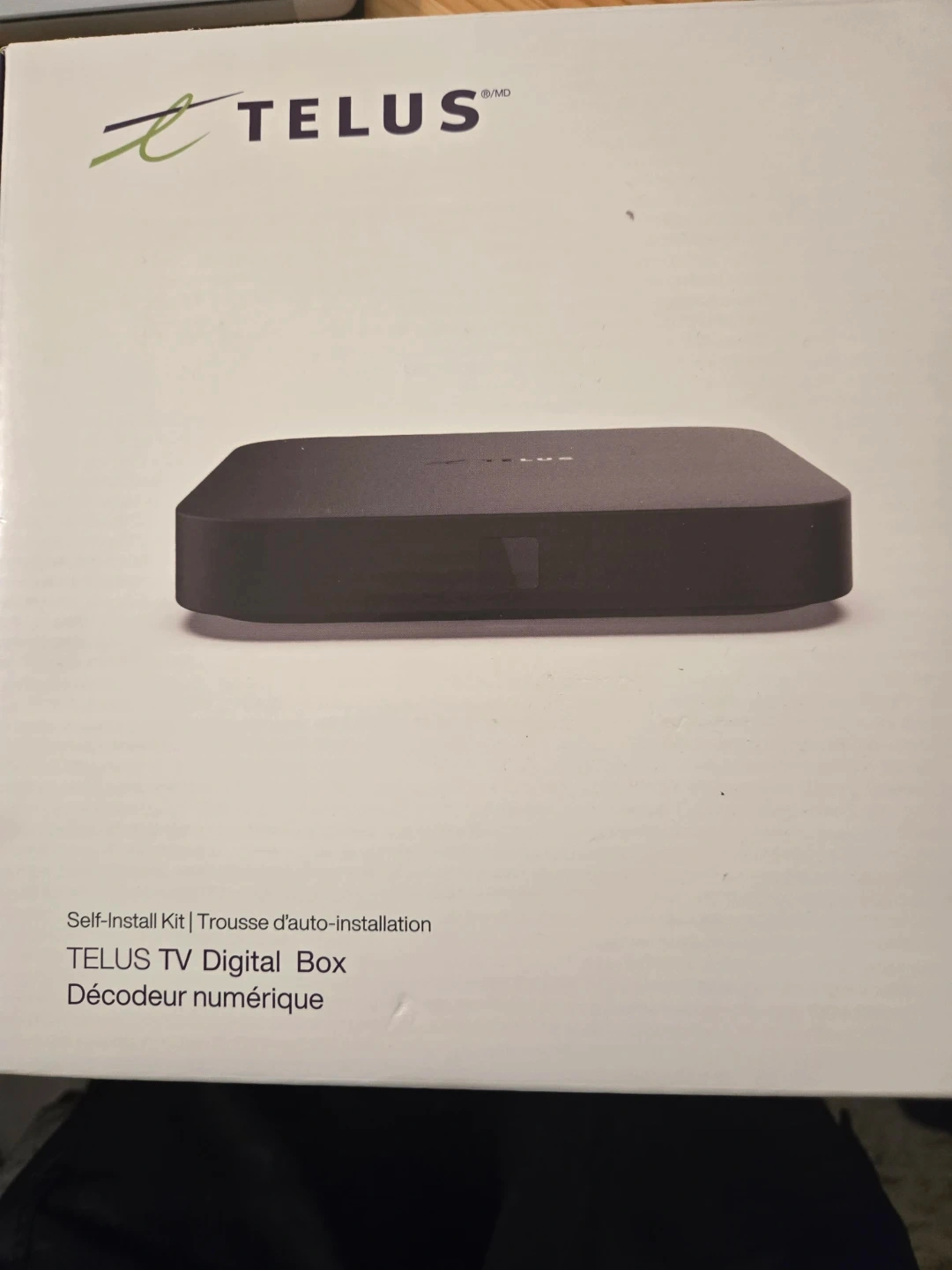 This is a TELUS TV digital box, it's a self-install kit. It comes with a remote control, power adapter, and HDMI cables. The box is in great condition, ready for your home entertainment setup!