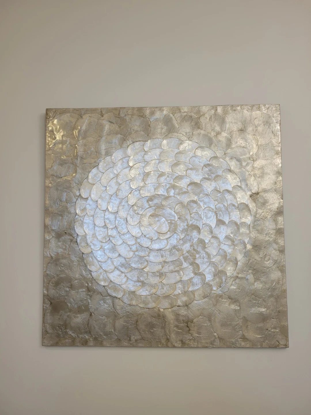 302A beautiful piece of wall art featuring a mother of pearl design. It adds a touch of elegance to any room!