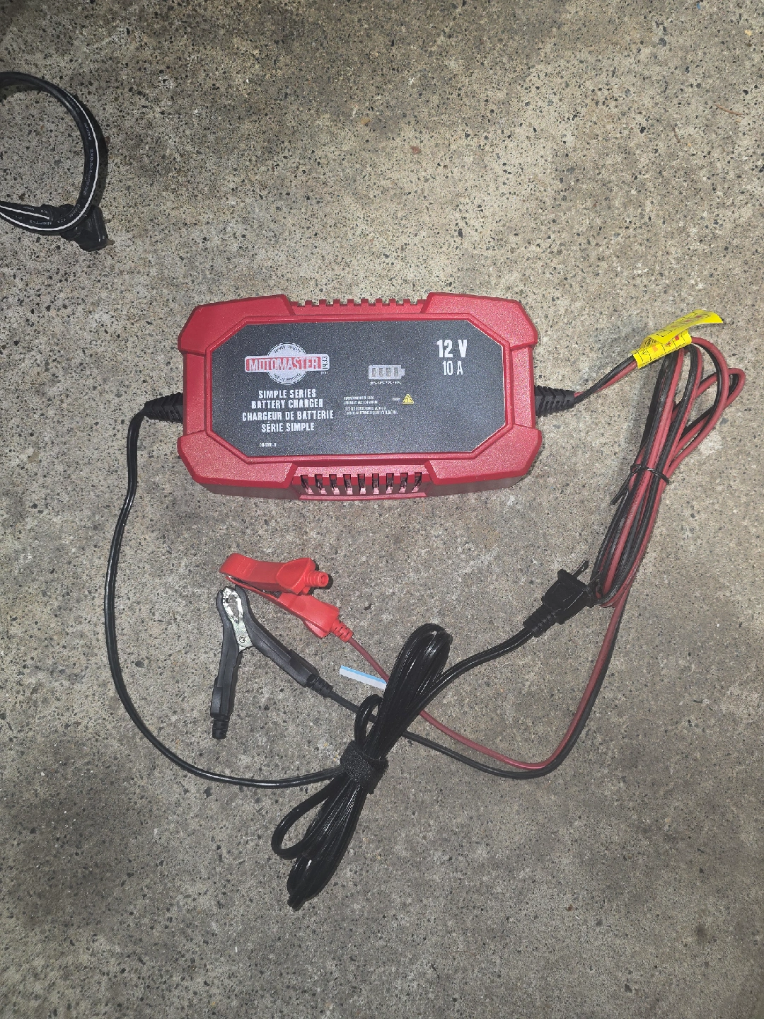 68Selling a MotoMaster Simple Series Battery Charger. It charges 12V batteries at 10A. Perfect for cars, trucks, and other vehicles that use 12V batteries!