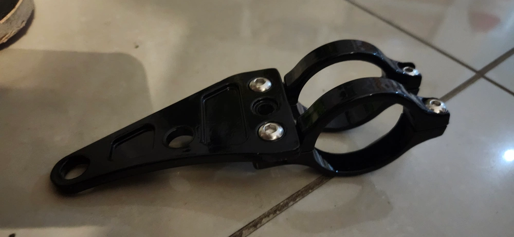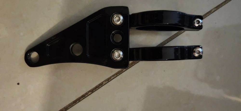 Selling a motorcycle headlight bracket in black. It looks to be in great condition and ready to install on your motorcycle project