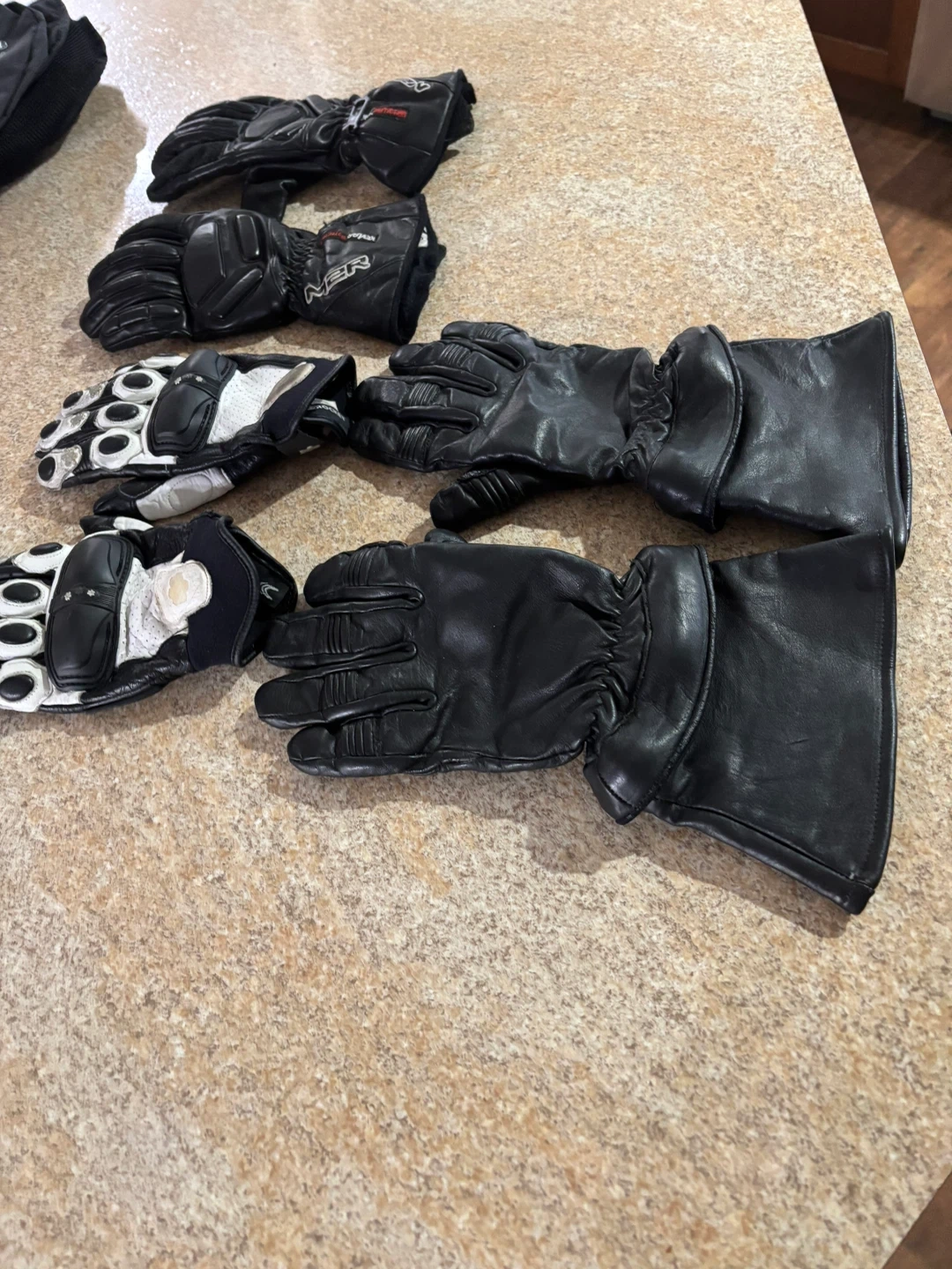 127Selling a collection of motorcycle riding gloves. They are in used condition, with some signs of wear and tear. Perfect for motorcycle enthusiasts!