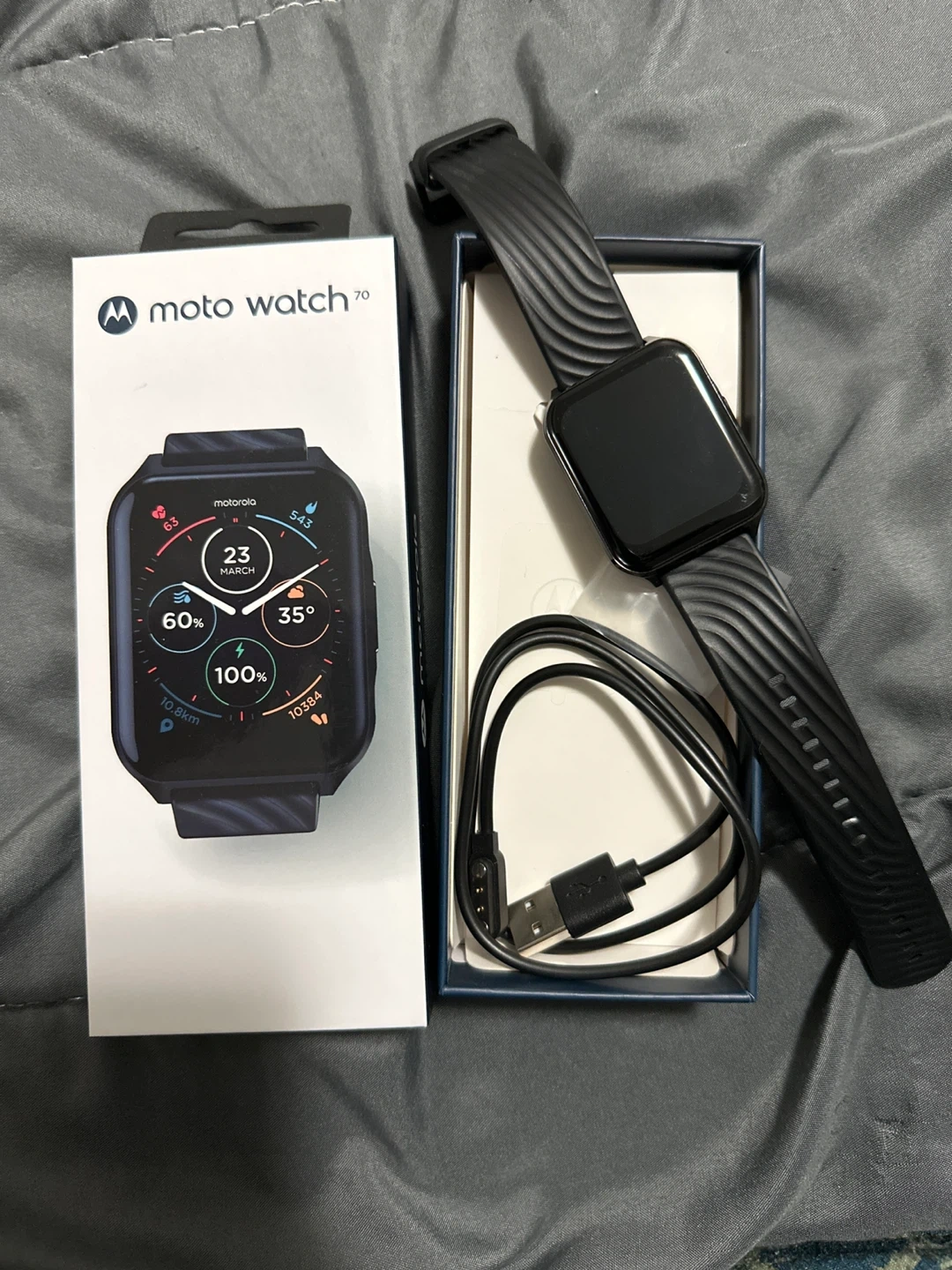116Selling a Motorola Moto Watch 70 in black! It comes with its original box and charger. It's in great condition and ready for a new owner!