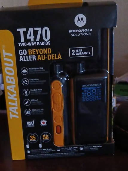 Selling a brand new set of Motorola Talkabout T470 two-way radios! They're still in the original box and ready for your next adventure. These radios are weatherproof IPX4 rated, have easy pairing, and feature a VibraCall alert. They also have an LED torch and are FRS license-free. Perfect for staying connected on hikes or camping trips!
