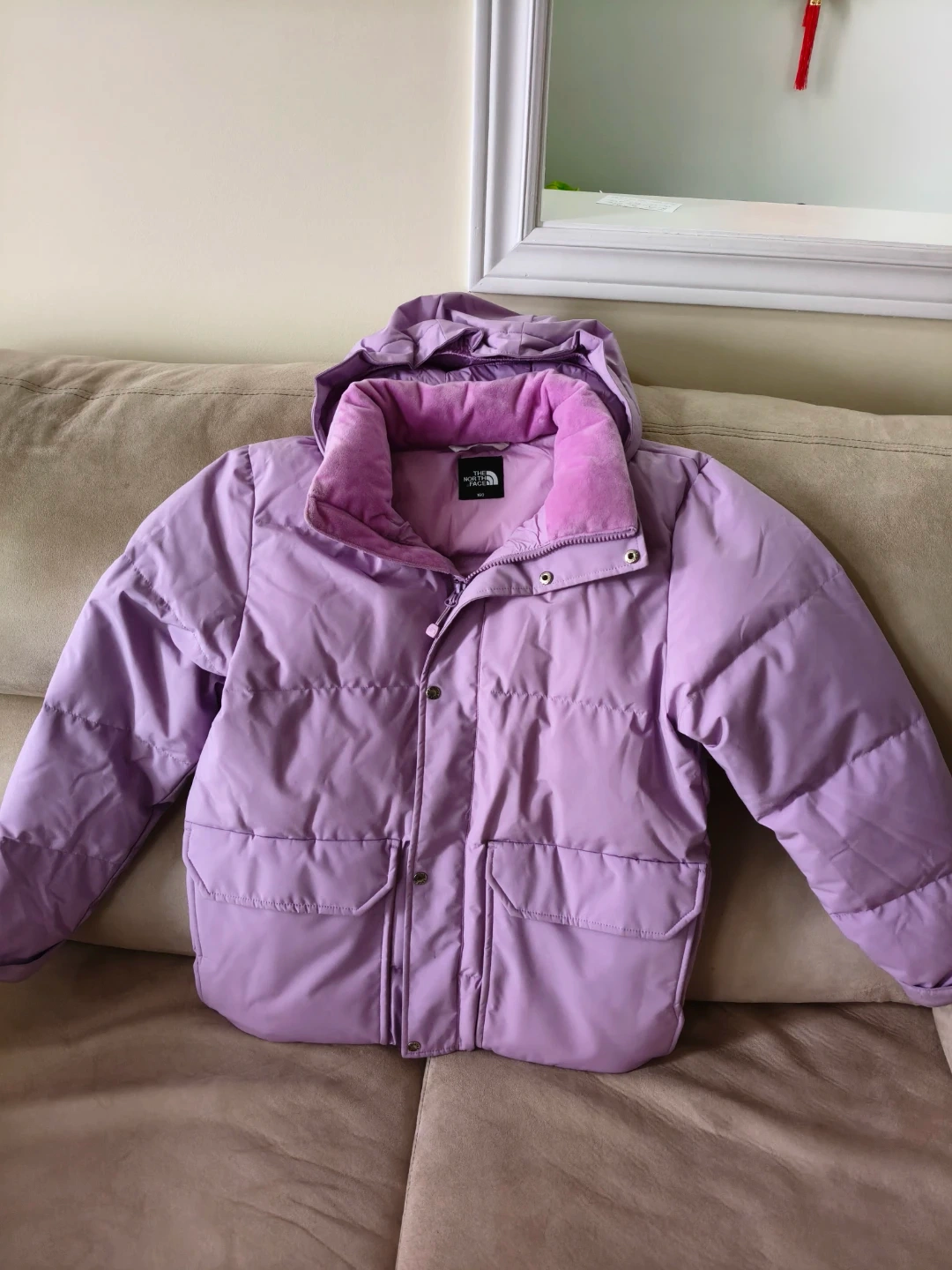 Selling a cute The North Face puffer jacket in a lovely shade of purple! It's in great condition and perfect for staying warm during the colder months. The size is 160.