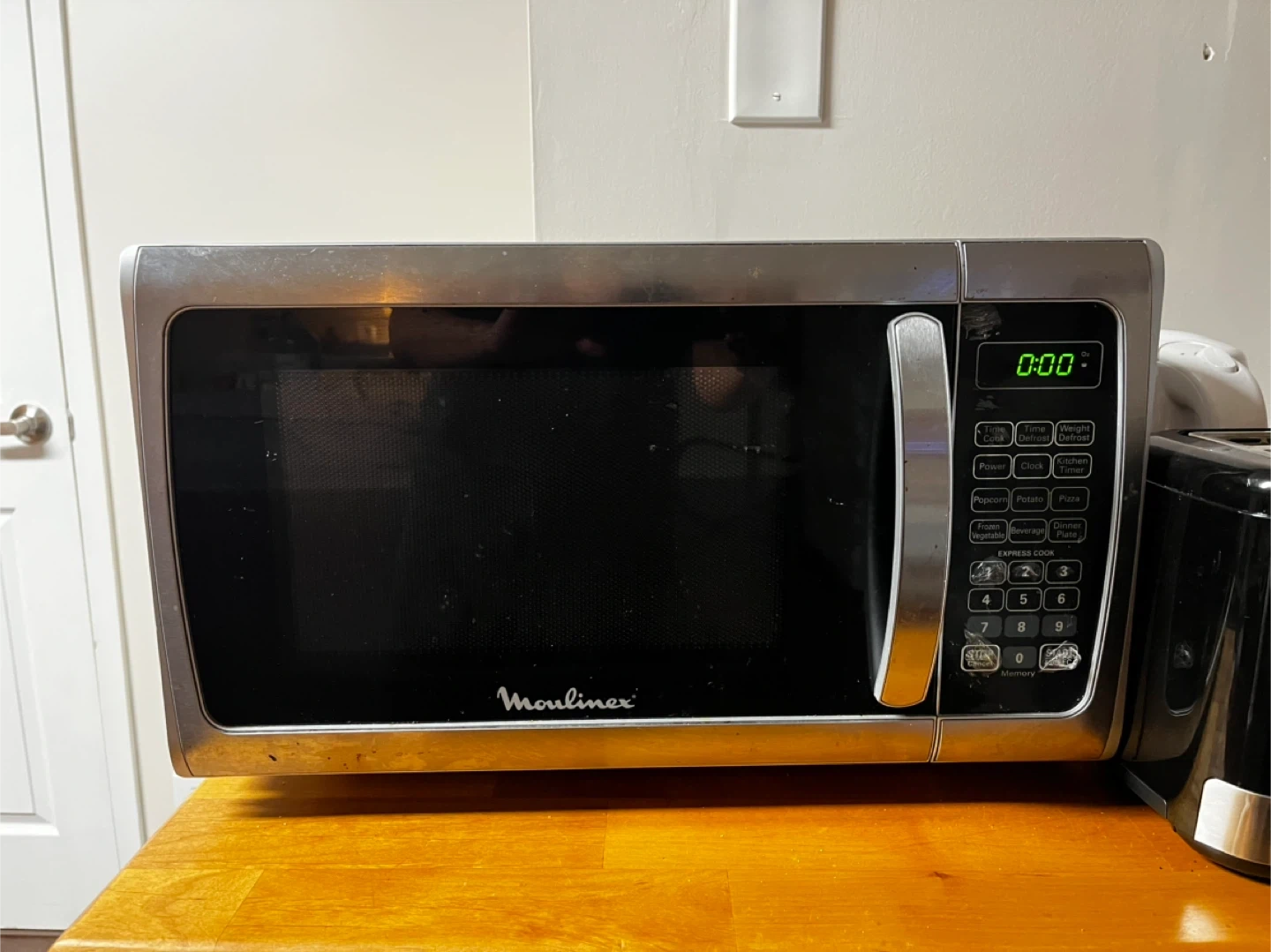 Selling a Moulinex 1.1 cu.ft. stainless steel microwave. It's a practical and stylish addition to any kitchen, office, dorm, or cottage. It features 6 one-touch cook options for popcorn, pizza, potato, beverages, and frozen vegetables. Key features include: - Touchpad electronic control panel with LED display timer and clock - Auto defrost by time or weight - Removable glass turntable for easy cleaning - 1.1 cu.ft. capacity - 1,000 watts - Child lock for added safety Dimensions: 20 L x 16 W x 12 H (51 x 40.6 x 30.4 cm) Pick up only Cash only