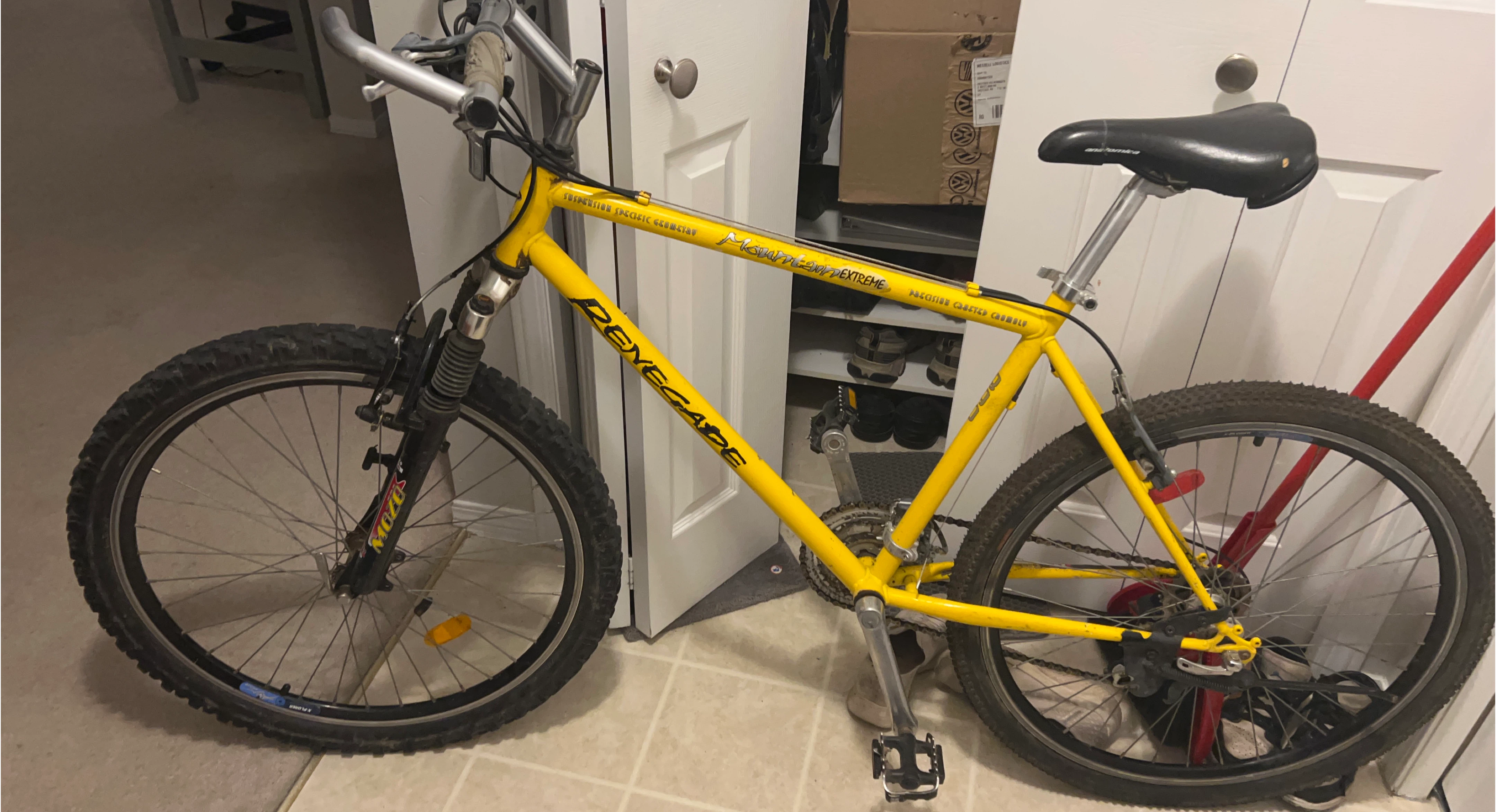Selling a yellow Renegade Mountain Extreme bicycle. It features a suspension specific geometry and precision crafted assembly. Perfect for hitting the trails! Upgraded Kalin handlebars and Mozo shocks. Canadian made