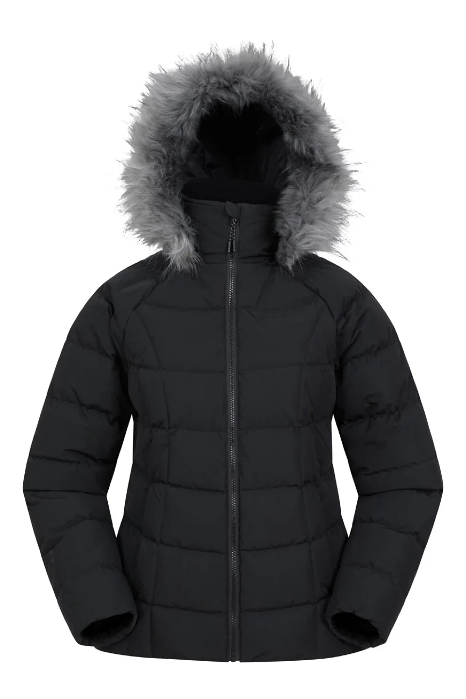 Keep cozy this winter with this black padded Down jacket from Mountain Warehouse! It features a faux fur trim on the hood, adding a touch of style while keeping you warm. Perfect for those chilly Canadian days! Perfect for extreme weather and snowfall Water proof
