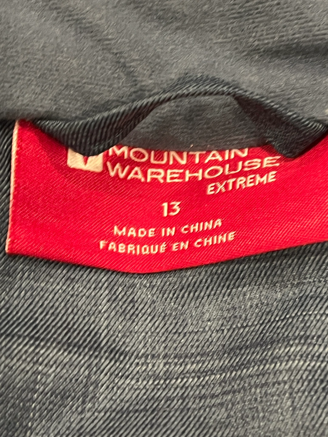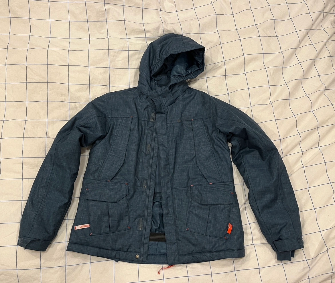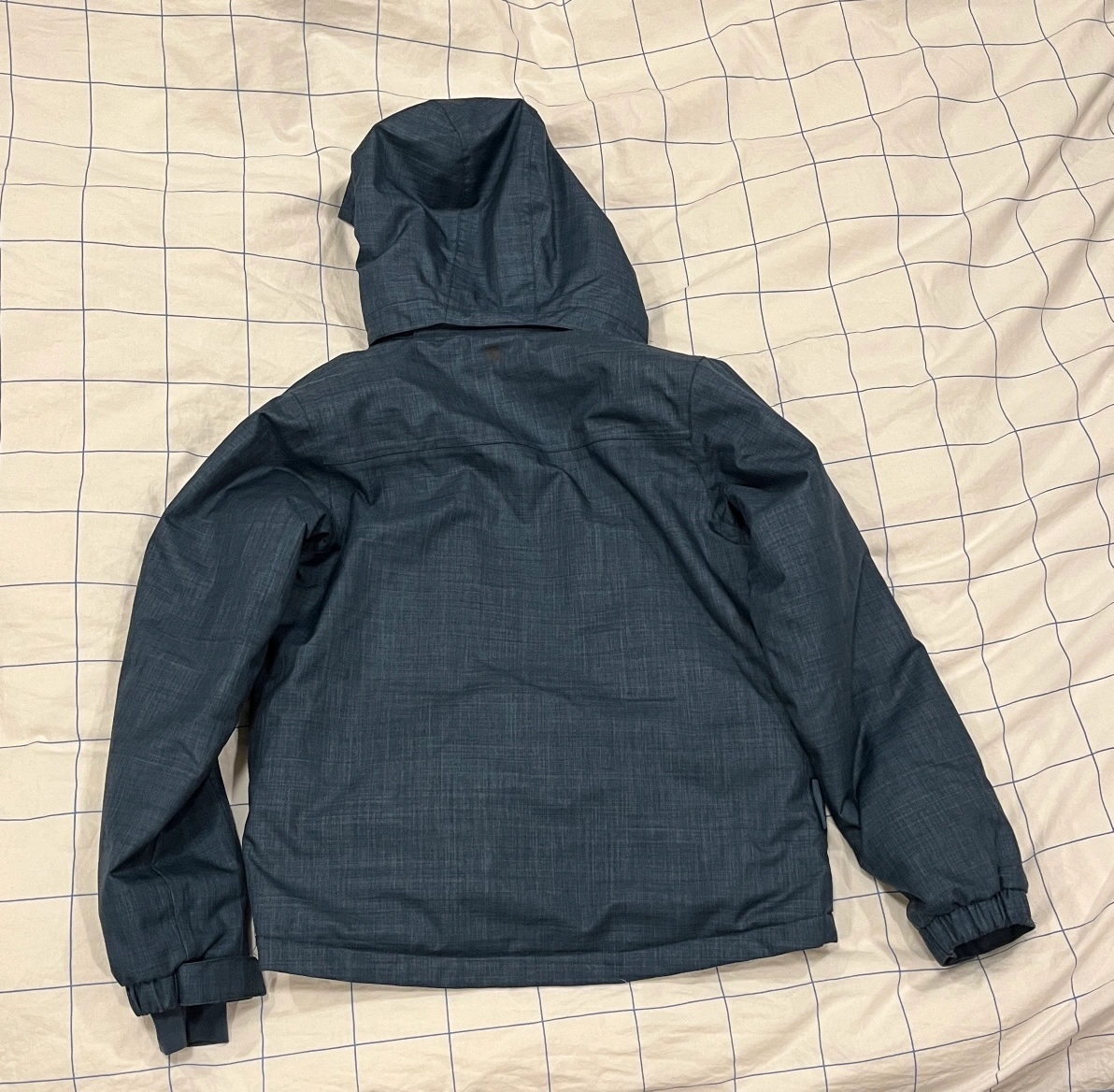 95Blue ski jacket with a hood. Zipper closure, two pockets on the front and one on the left sleeve. Size 13 for boys. Ages 10-13 approximately