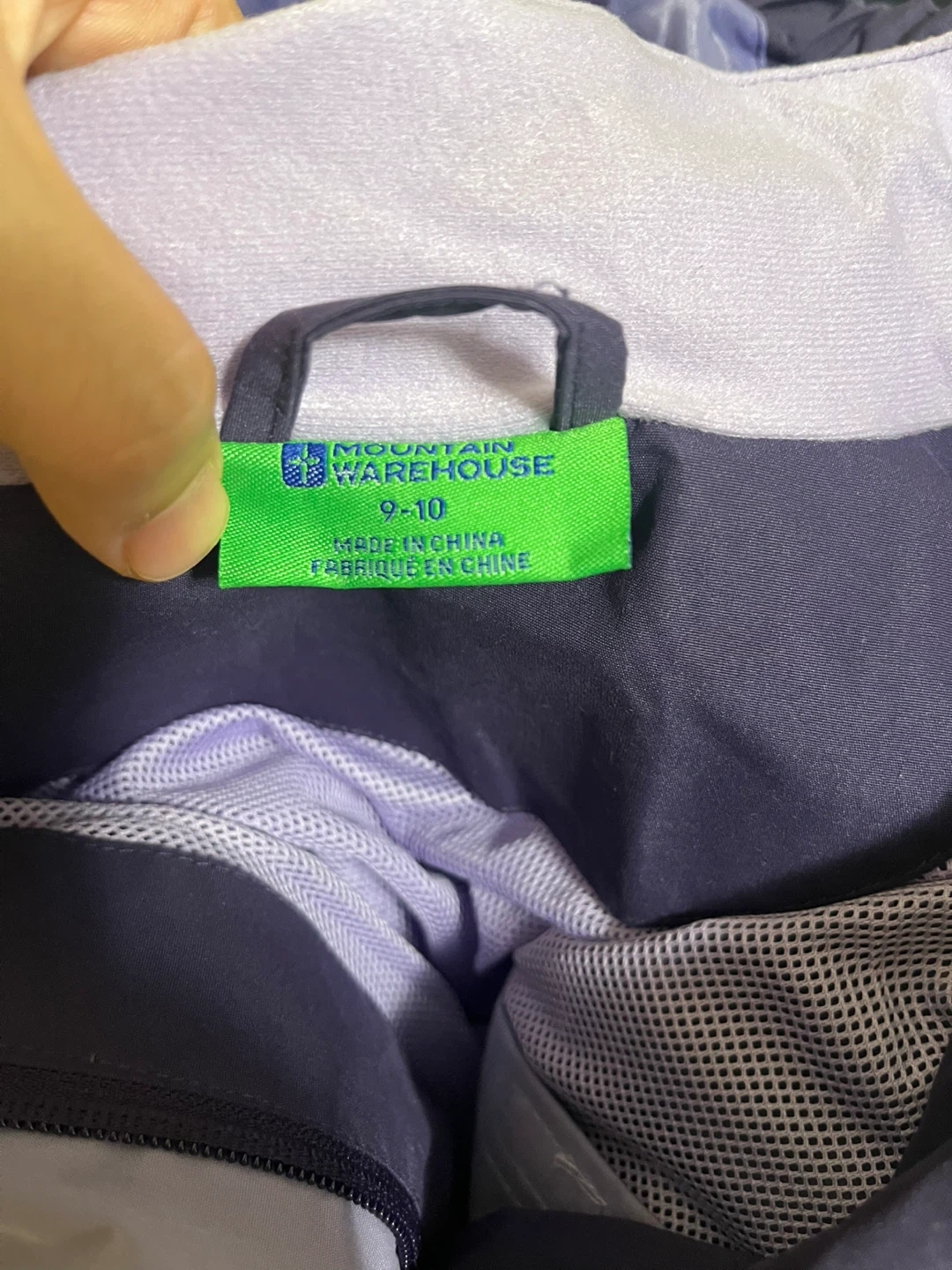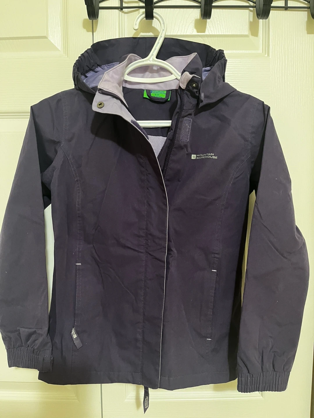 A Mountain Warehouse girls rain jacket in purple. It's a size 9-10 and in great condition. From smoke & pet free home
