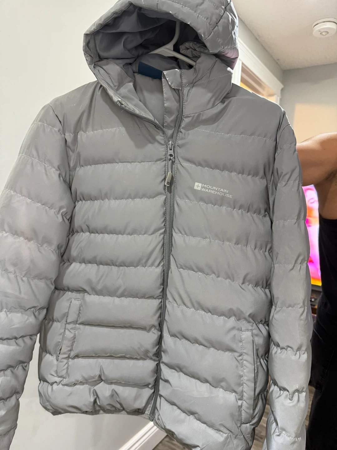 Selling a Mountain Warehouse padded jacket in a lovely grey colour. It's a US size 6, UK size 10, and EU size 38. Perfect for staying warm and cozy!