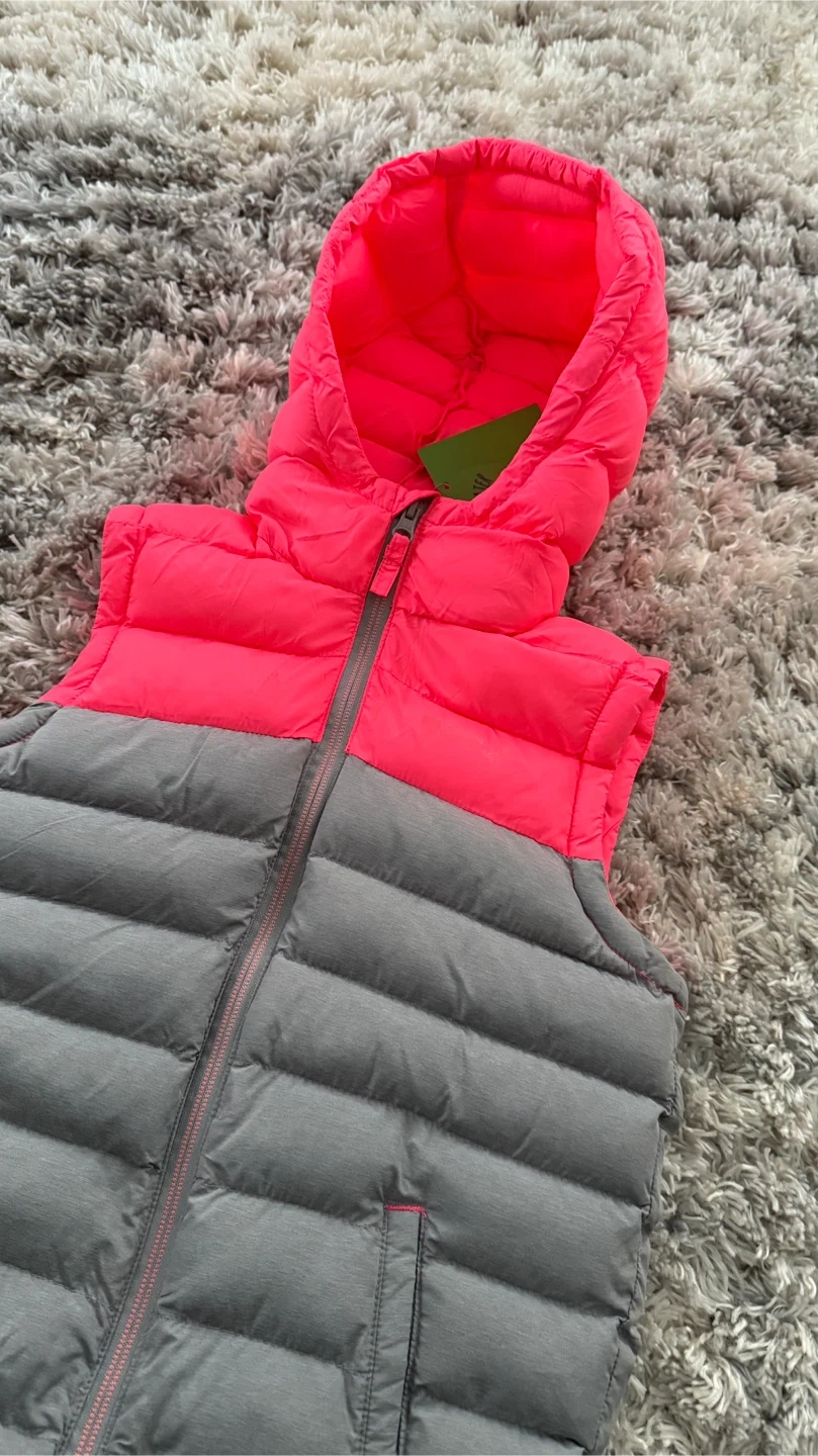 60This Mountain Warehouse padded vest is perfect for keeping your little one warm! It's a size 7-8 years and features a stylish two-tone design with a vibrant pink hood and a grey body. It's also water-resistant, making it ideal for light rain or snow