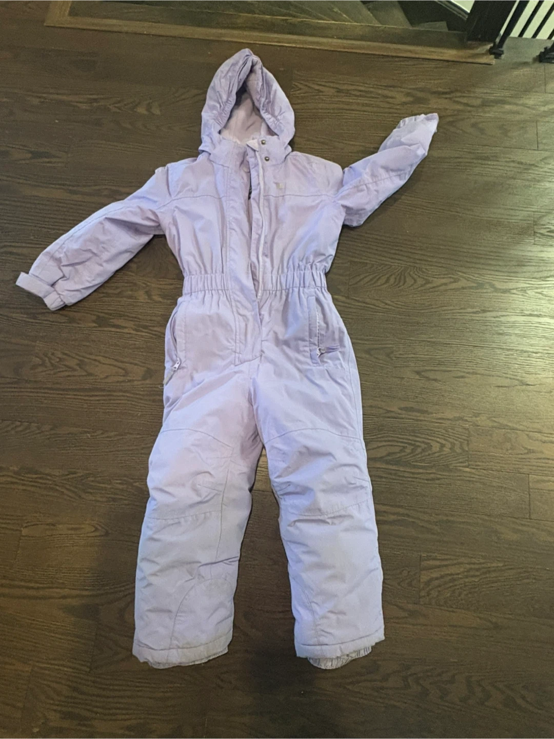 15Selling a Mountain Warehouse snowsuit in a lovely light purple colour! It's waterproof and has a PFC-free water repellent finish. Perfect for keeping your little one warm and dry during winter adventures. Size 5-6 years