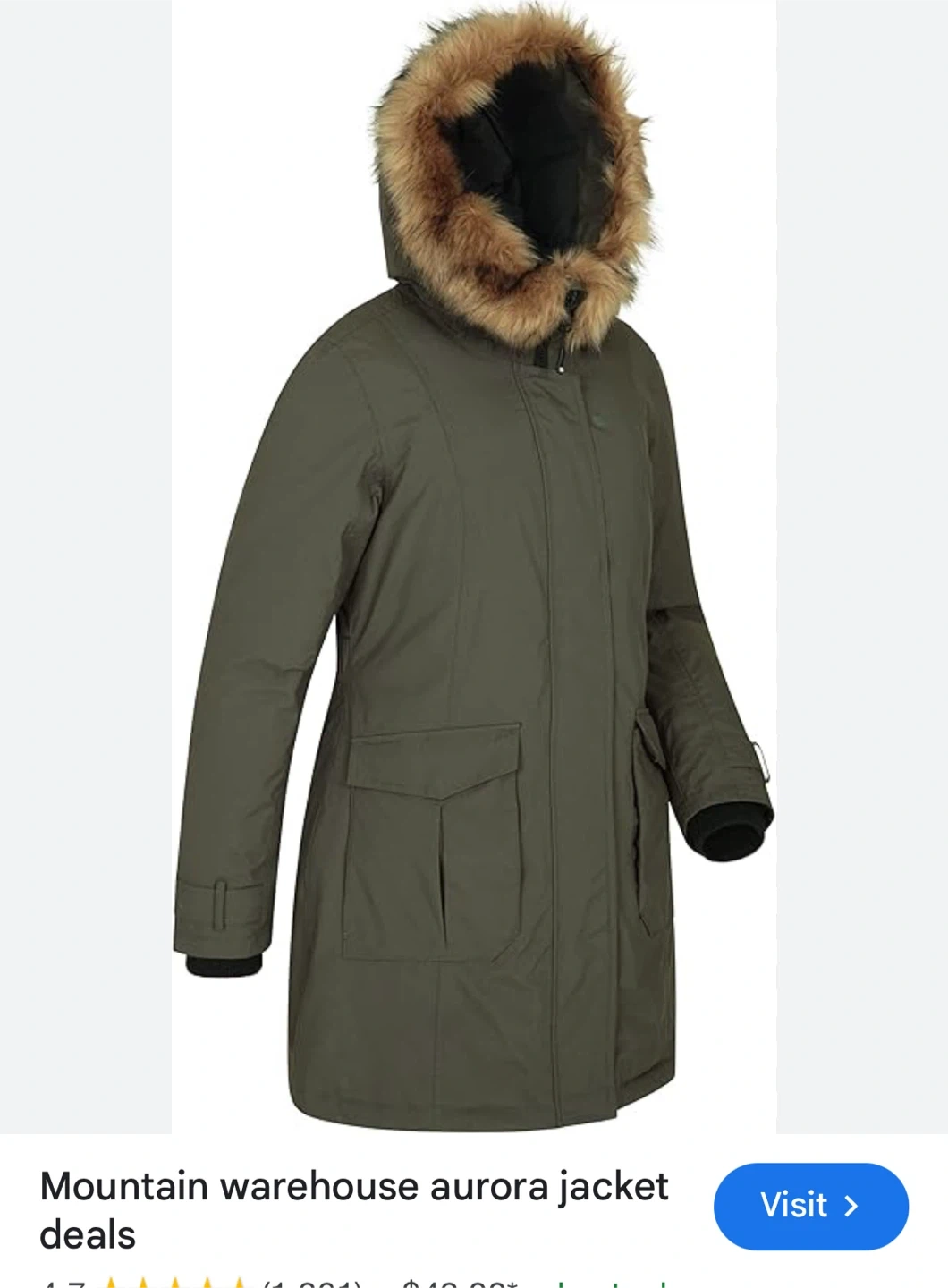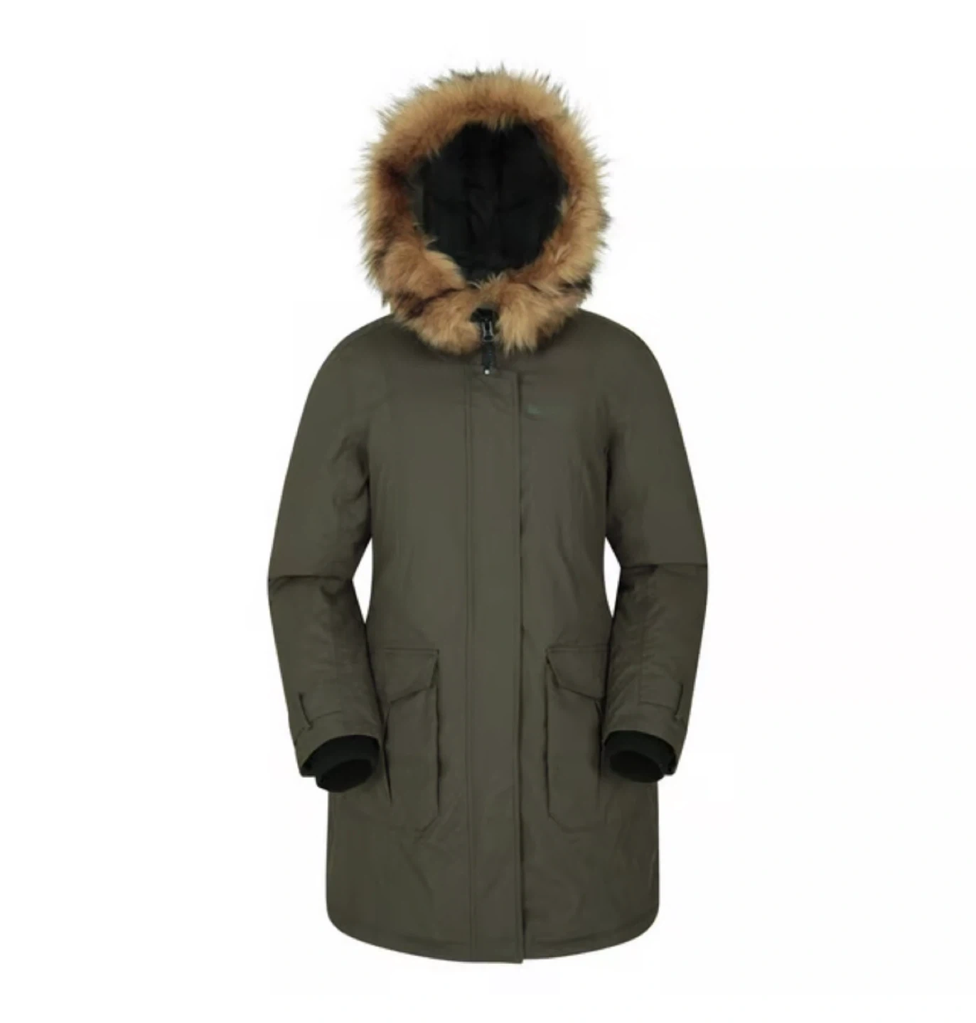 Stay warm this winter with a Mountain Warehouse jacket! This stylish and functional jacket is perfect for braving the Canadian cold. It features a fur-trimmed hood and a flattering silhouette. It's in great condition and ready for a new owner