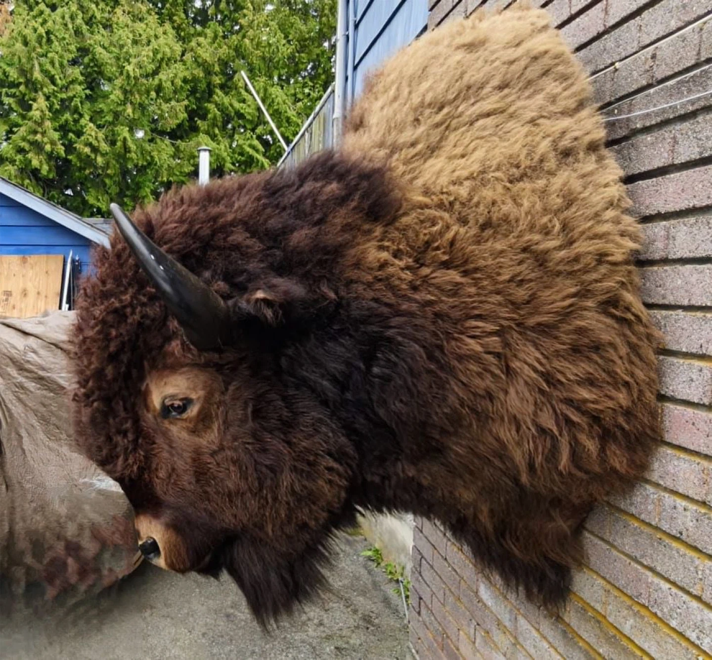 65I am selling one of my favourite mounted heads, a mint condition Bison, it is huge! It will enhance your living room, your office reception, your shop or business, it has a quality for an exposition in a museum like they are in the interiors of Canada. Measurements are
