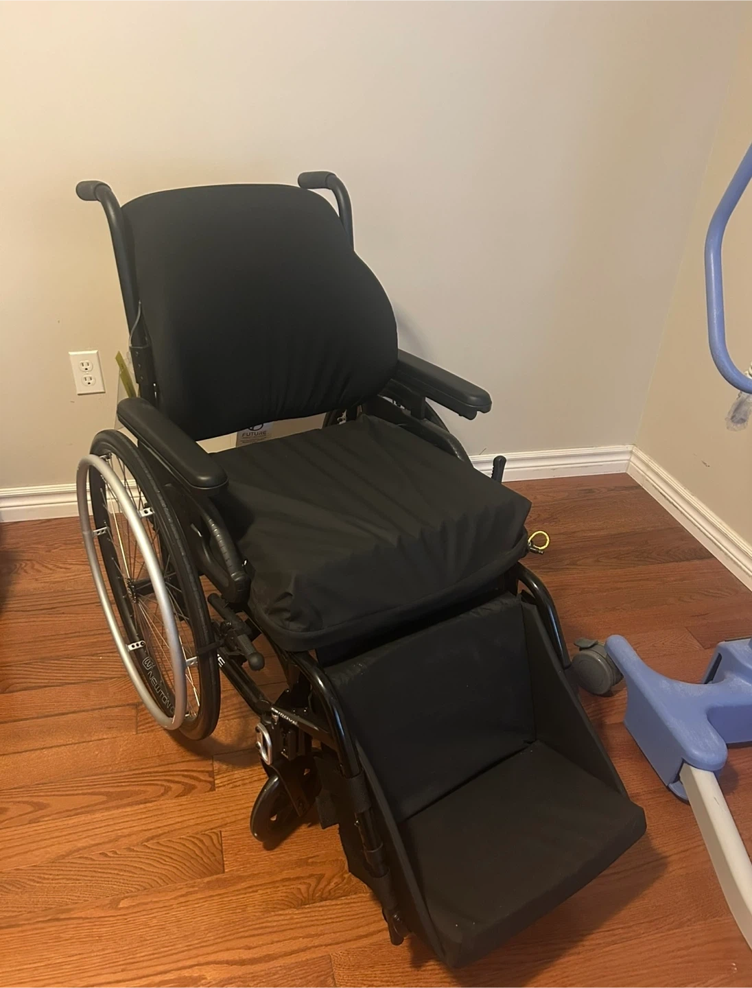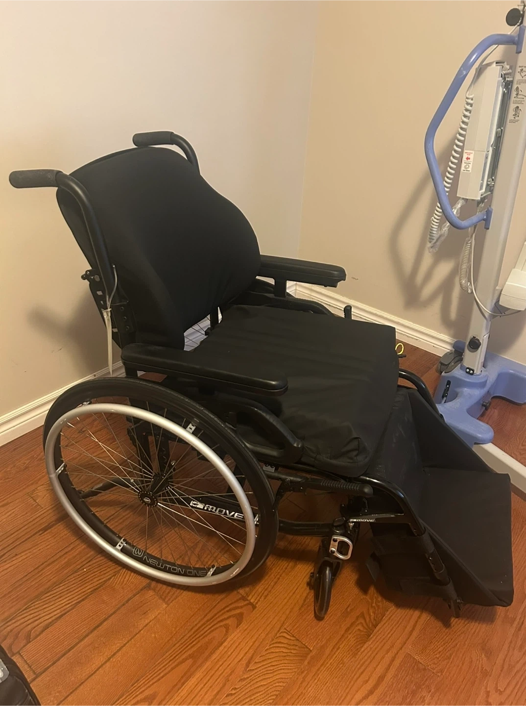 10Selling a Move Newton One Manual wheelchair in near-new condition! Used only three times. It is black and has cushioned back, seating and a footrest.