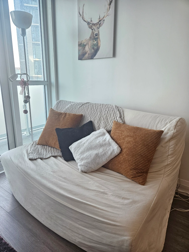 119TAKE ALL, BIG SAVINGS! Total original price $500+tax IKEA LYCKSELE Sofabed with cover H&M throw blanket 2 medium pillows 2 small pillows *ASSEMBLED ALREADY* Please check minor stain in last photo. tried to wash already. READY BY 4TH WEEK OF JANUARY MOVING OUT SALE! CHECK MY OTHER LISTINGS TOO FOR DISCOUNTS :) PICKUP: 77 Mutual St DELIVERY: At your expense PAYMENT: Cash / Etransfer