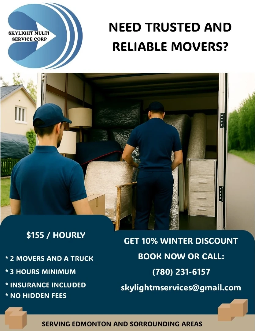 10For your fast, and reliable moving, delivery, and courier service, contact Skylight Multi Service Corp. We offer residential and commercial services across Alberta and other provinces.