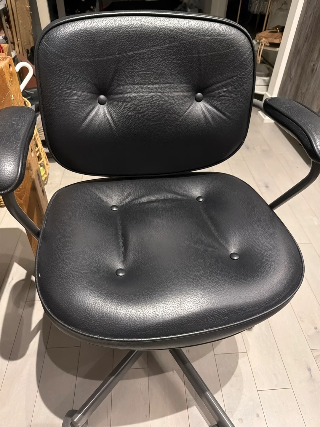 399Selling a stylish Eames-style office chair in black leather. It's in good condition and would look great in any home office. There are some signs of wear, as pictured.