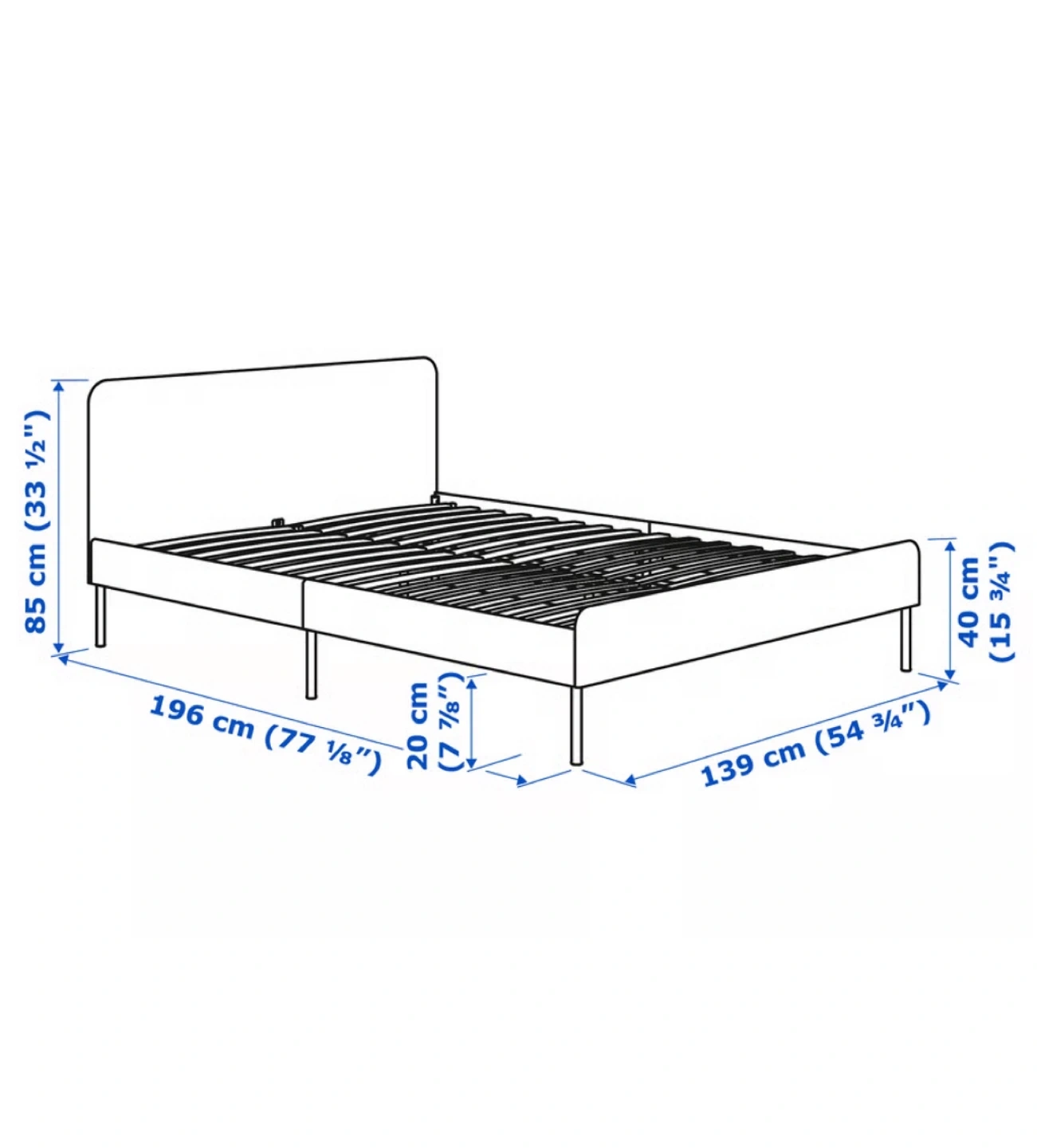 639MOVING OUT SALE GREAT CONDITION Selling an IKEA SLATTUM bed frame in full Double size. Was used only for a year. It's in great shape and ready for a new home! Dimensions in the picture Selling assembled Pick up near Yonge and Bloor