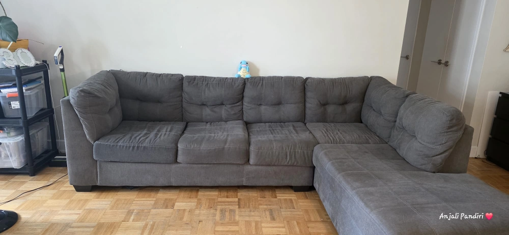 60For sale L-Shaped Sectional Sofa – $350 Comfy & Stylish 5-seater with right-hand chaise lounge Queen Mattress (10inch) - $120 used with a mattress protector & Oval Glass Coffee Table - $60 Clear tempered glass top with chrome legs Pet-free & smoke free house Dm for pricing