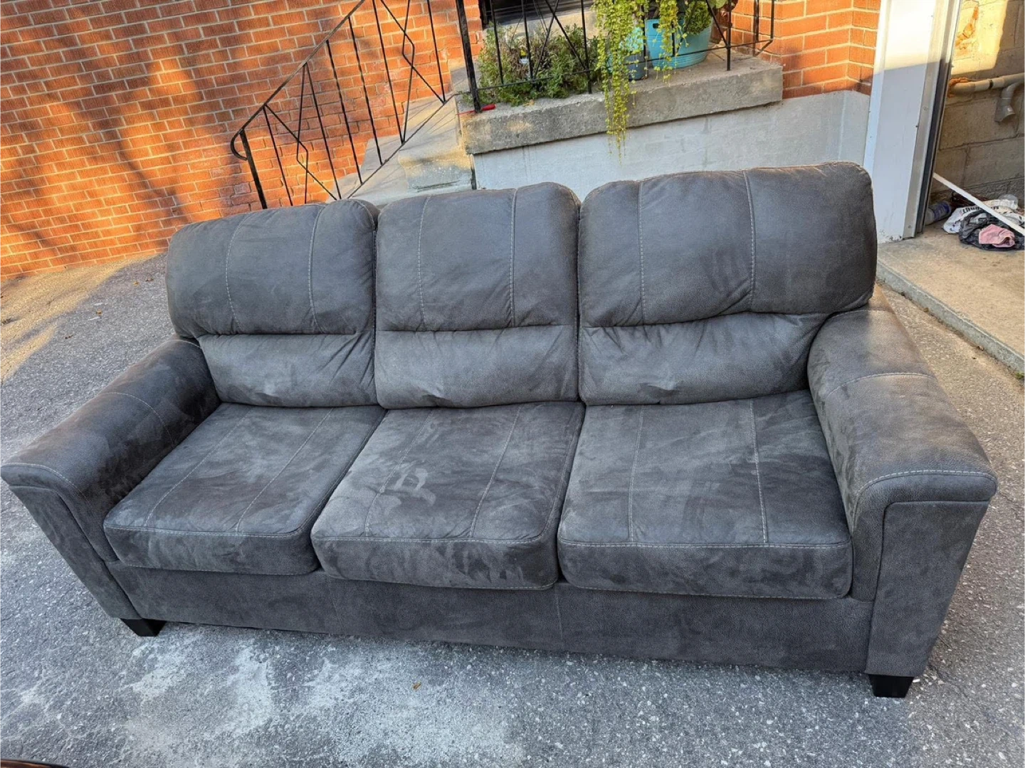 Comfortable grey three-seater sofa in good condition. Perfect for a living room or den! Originally purchased for 500$ Selling for 150$ Price is negotiable