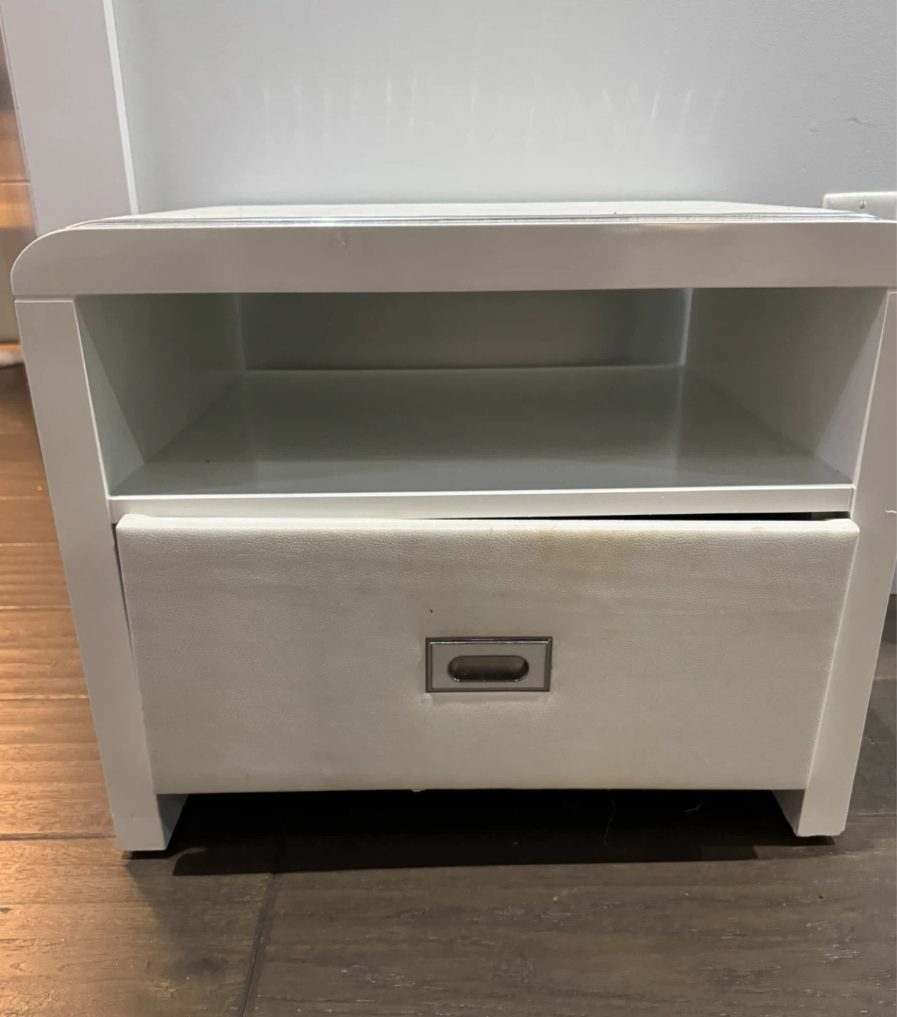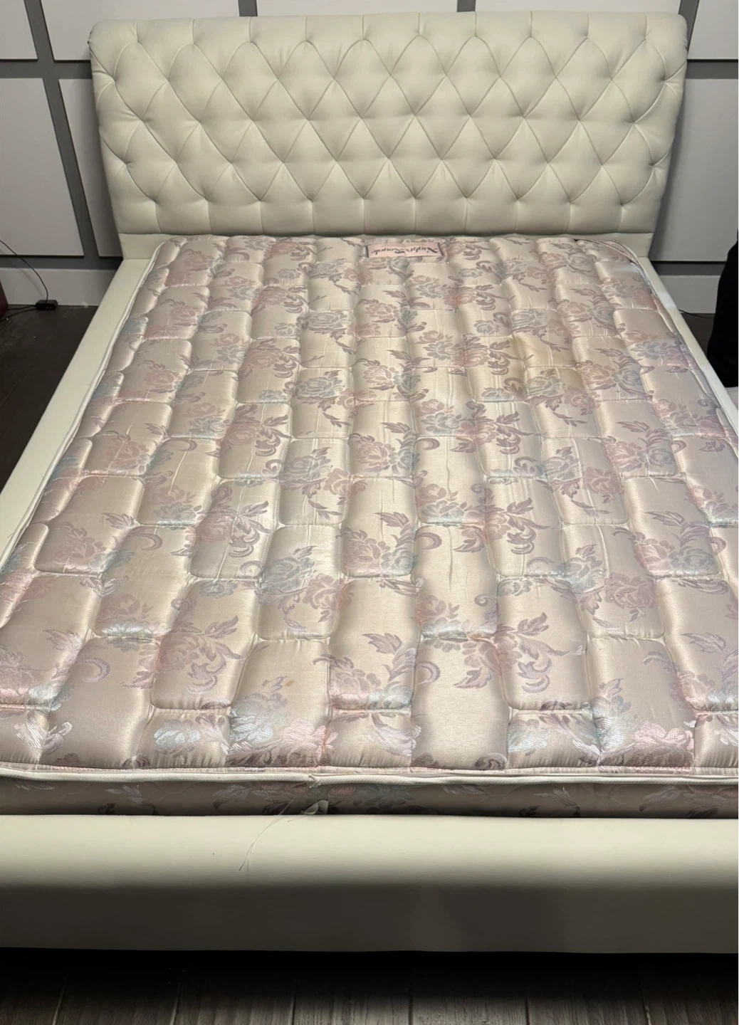 10Selling a used upholstered bed frame. It comes with a matching nightstand. The set is in good condition and would be great for a bedroom makeover. Please take a look at the photos for details!