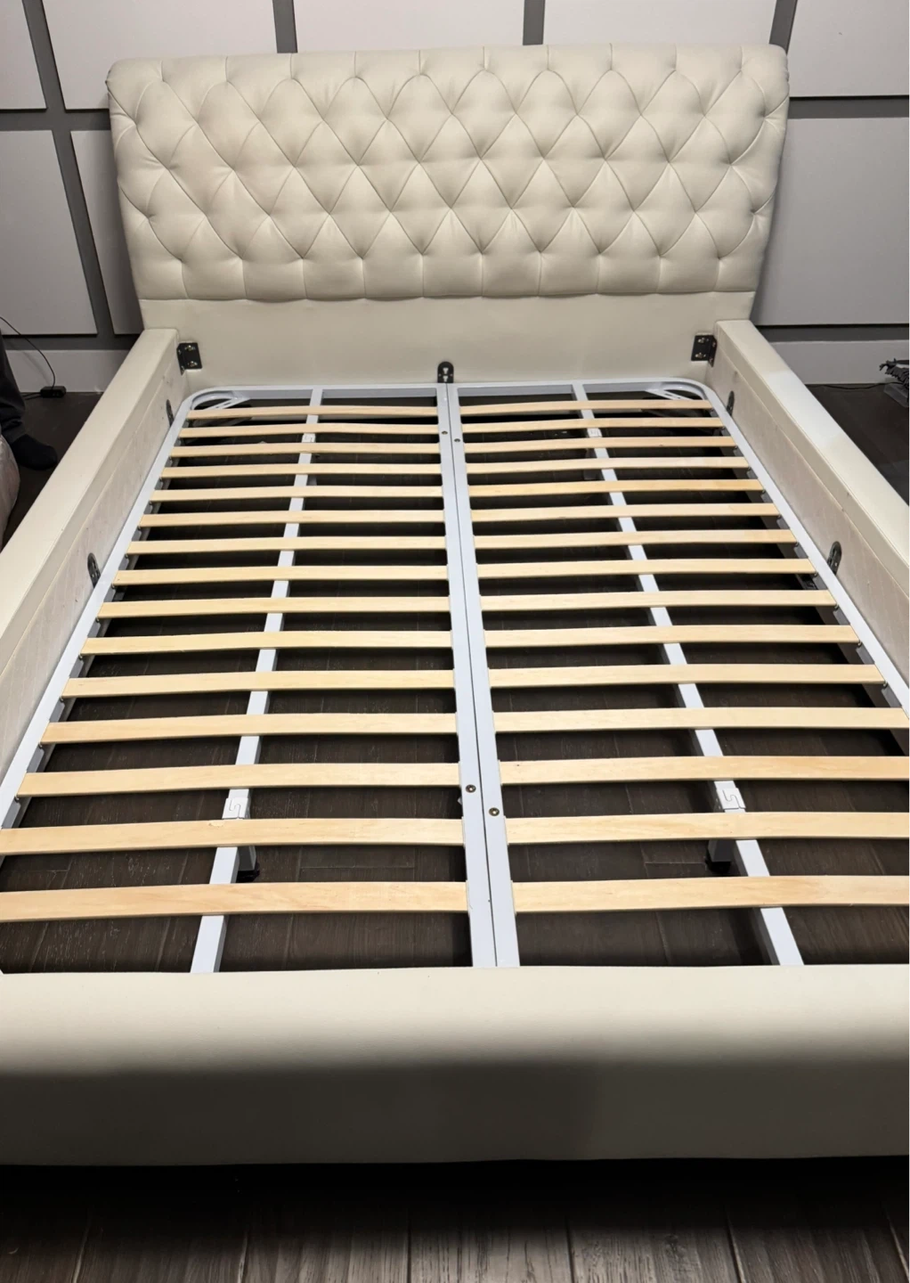 Queen Size Bed Frame - Dark Wood & Beige