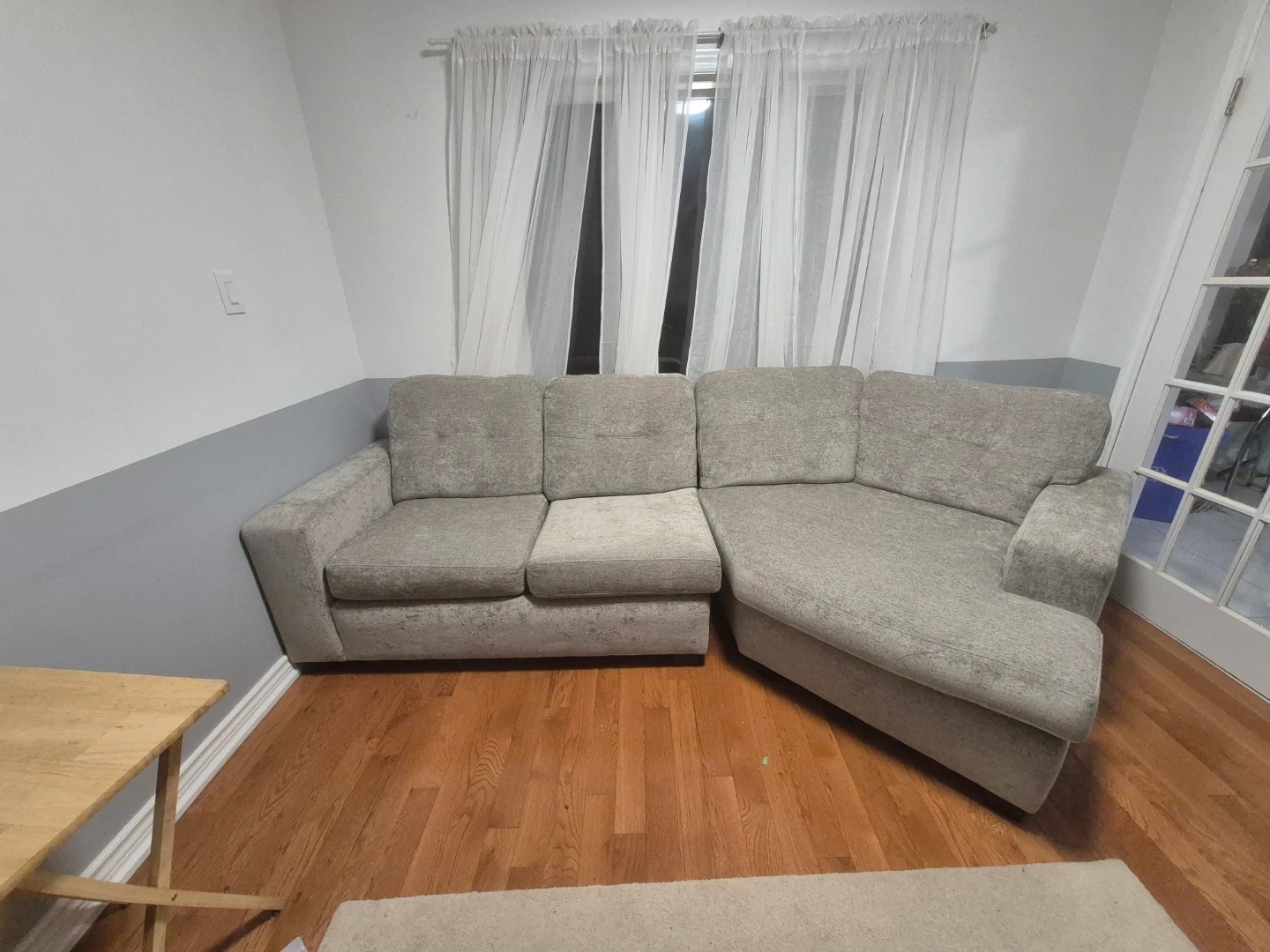 91Selling a comfy grey sectional sofa! It's in great condition just bought a couple of months ago. Perfect for a living room or family room. Will need a pickup truck because of the size. Got it for $1800 so no low ball offers.