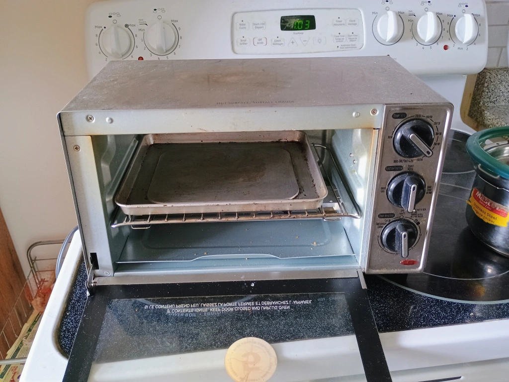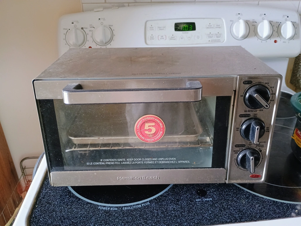 5Used countertop oven. Stainless steel finish. Includes baking pan.