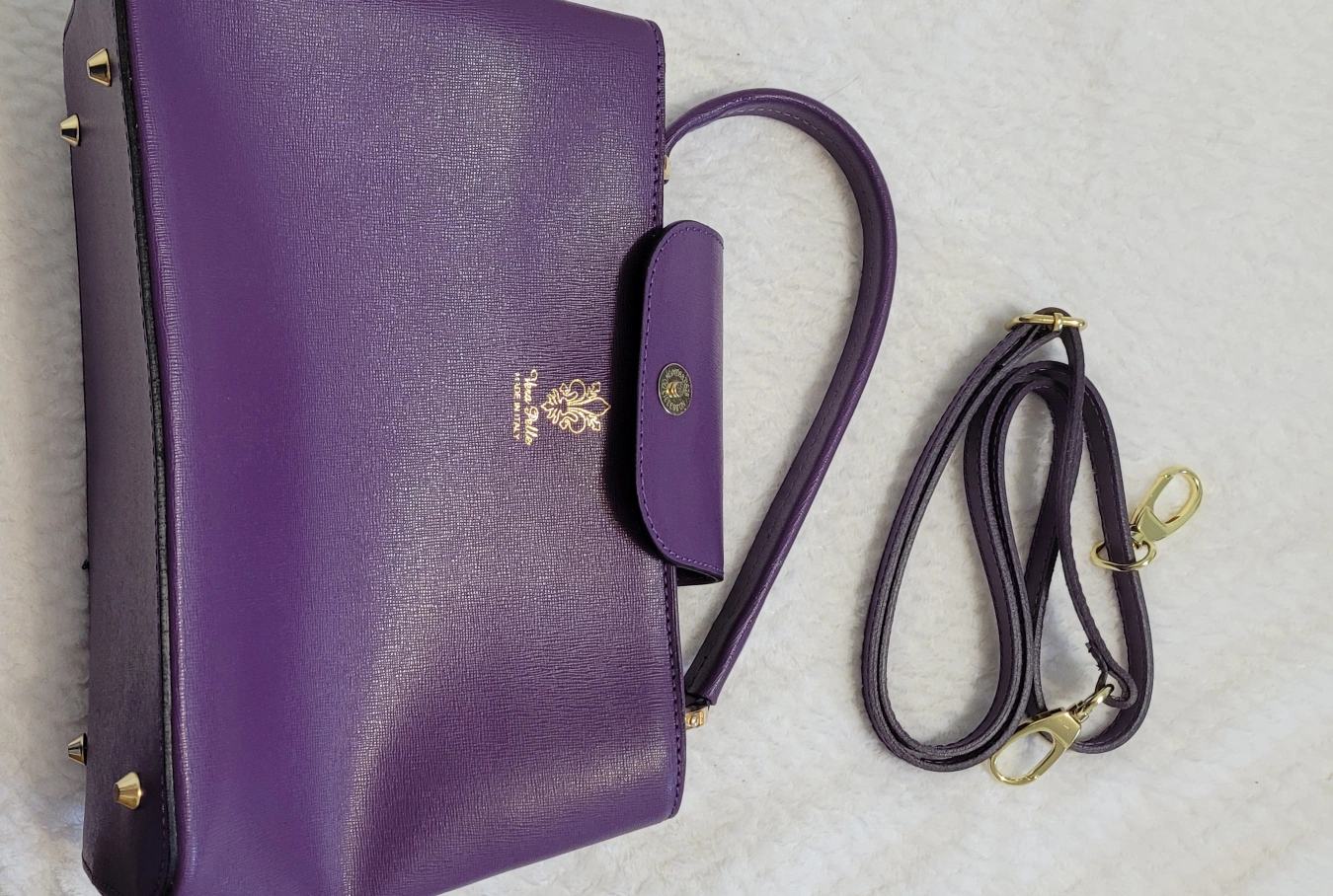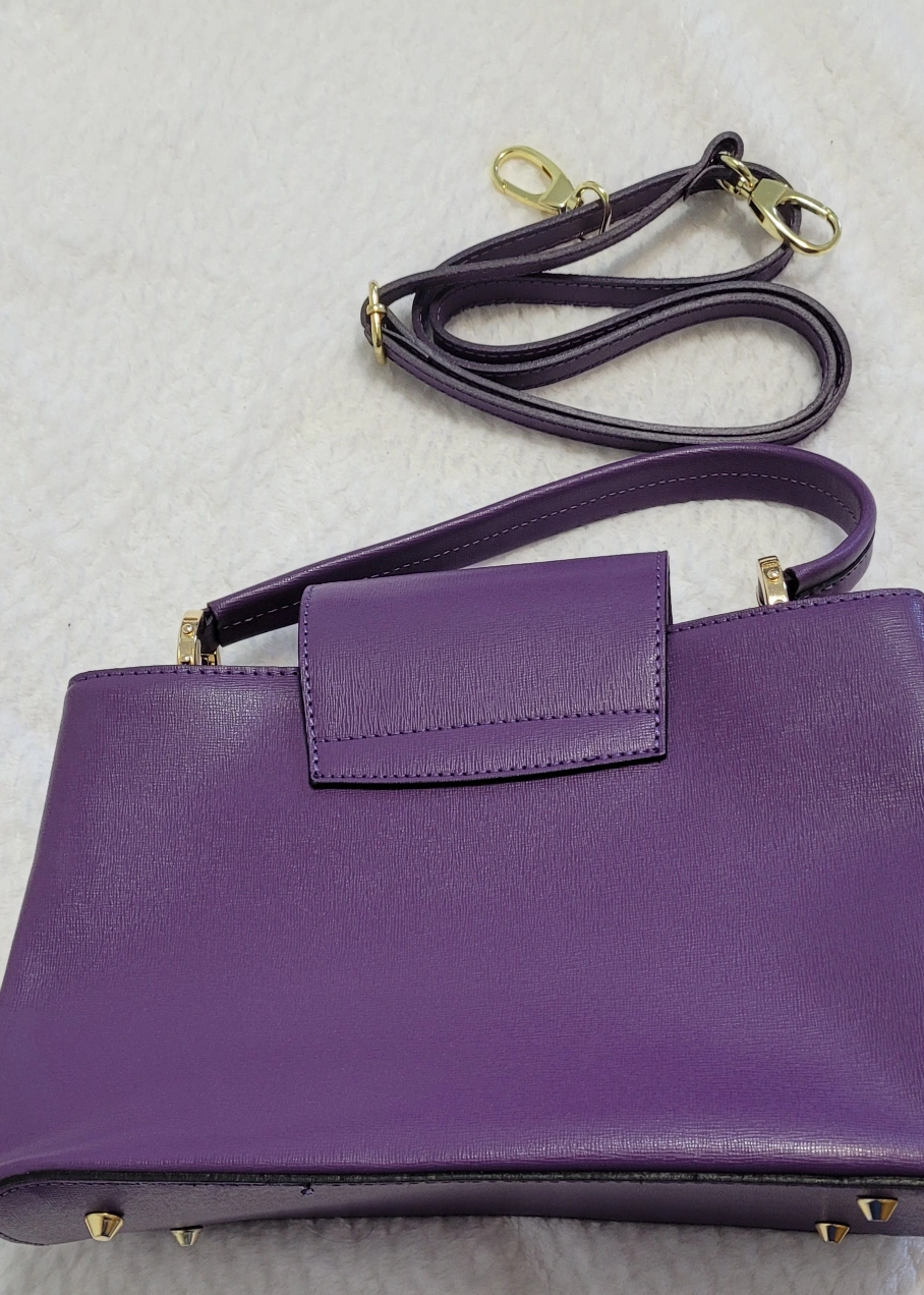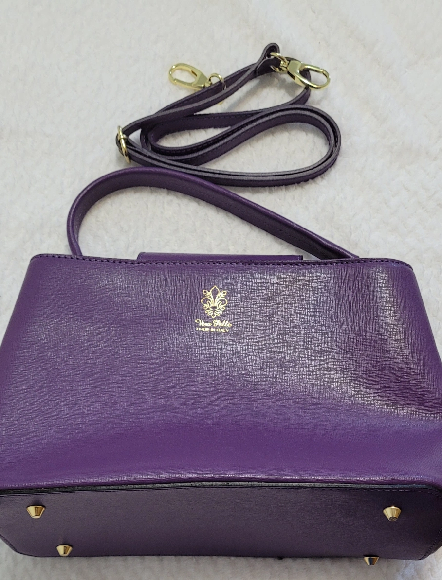Beautiful Vera Pelle handbag in a lovely purple colour. It's made in Italy and features a detachable shoulder strap. Perfect for adding a pop of colour to your outfit!