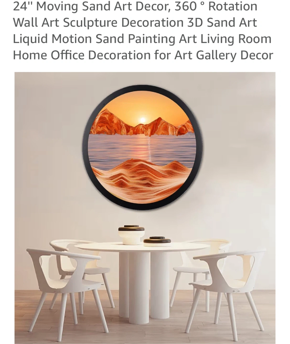 40Selling a 24" Moving Sand Art Decor. It's a 360° rotation wall art sculpture, creating a liquid motion sand painting. Perfect for adding a unique touch to your living room or home office decor! MSRP: $359 70x65x8cm