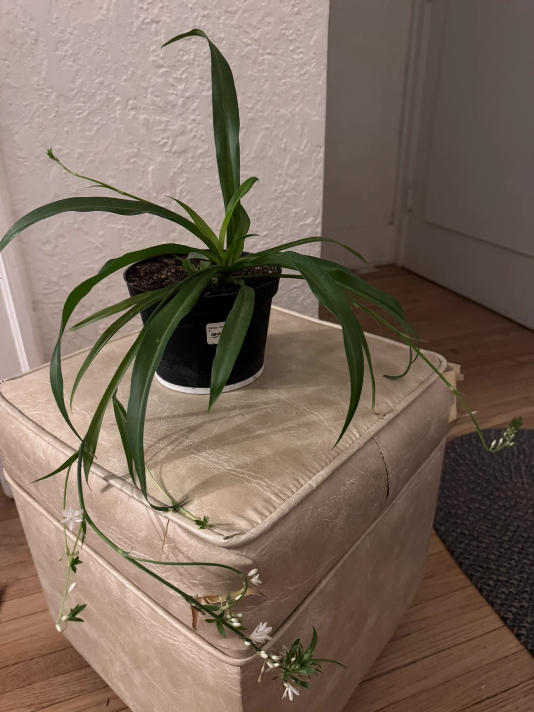 Healthy Strip Spider Plant with baby plants in temporary pot