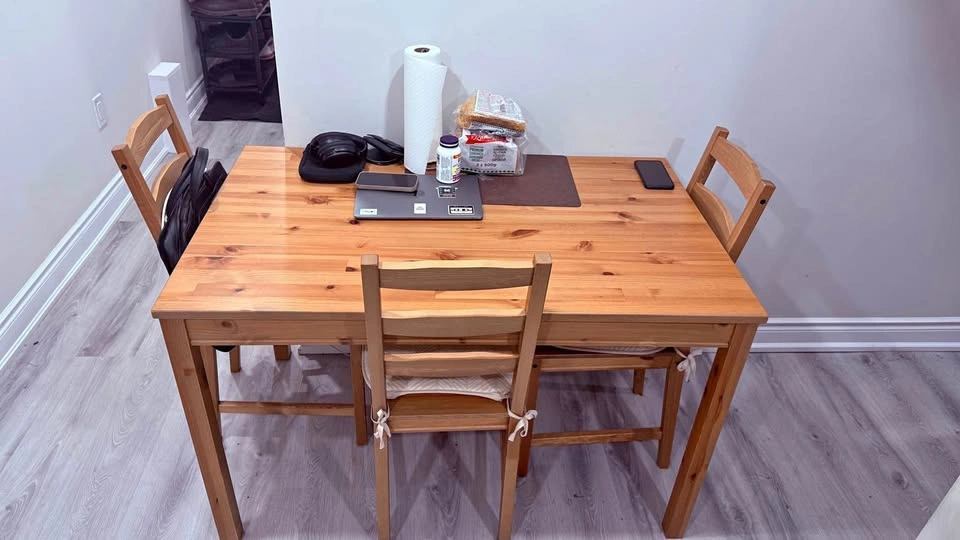 Selling a beautiful dining table that comfortably seats 4 people. This table is perfect for small dining spaces, offering both style and functionality. Key Features: Sturdy construction, built to last Simple, elegant design that fits any décor Smooth surface, easy to clean Seats 4 comfortably (ideal for smaller gatherings or family meals)