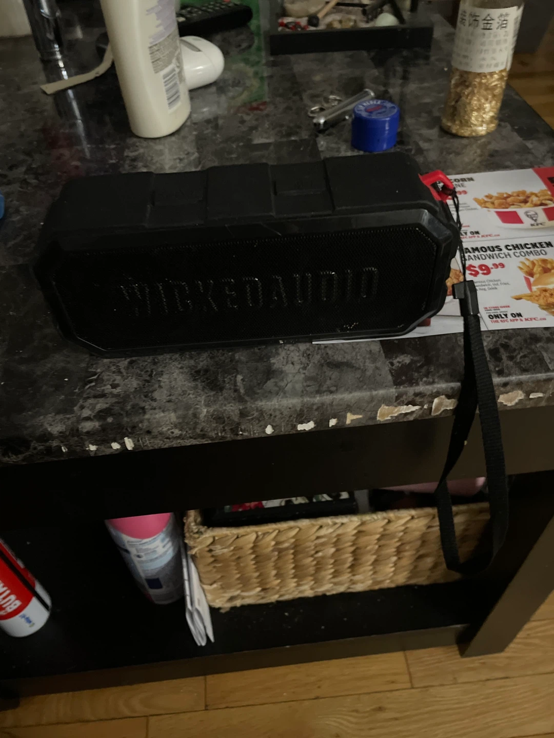 Selling a Wicked Audio portable Bluetooth speaker! It's black and ready to play your favourite tunes. It has a convenient strap for carrying around too