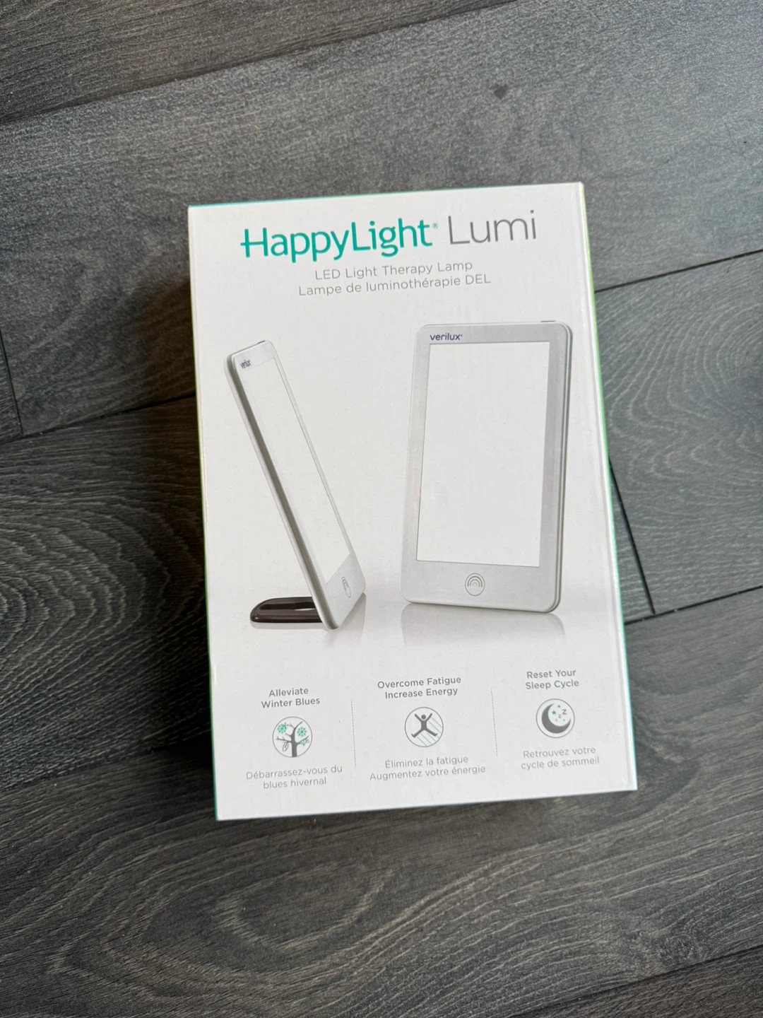This is a Verilux HappyLight Lumi LED Light Therapy Lamp. It's designed to help alleviate winter blues, overcome fatigue, and reset your sleep cycle. Includes original box and power adapter.