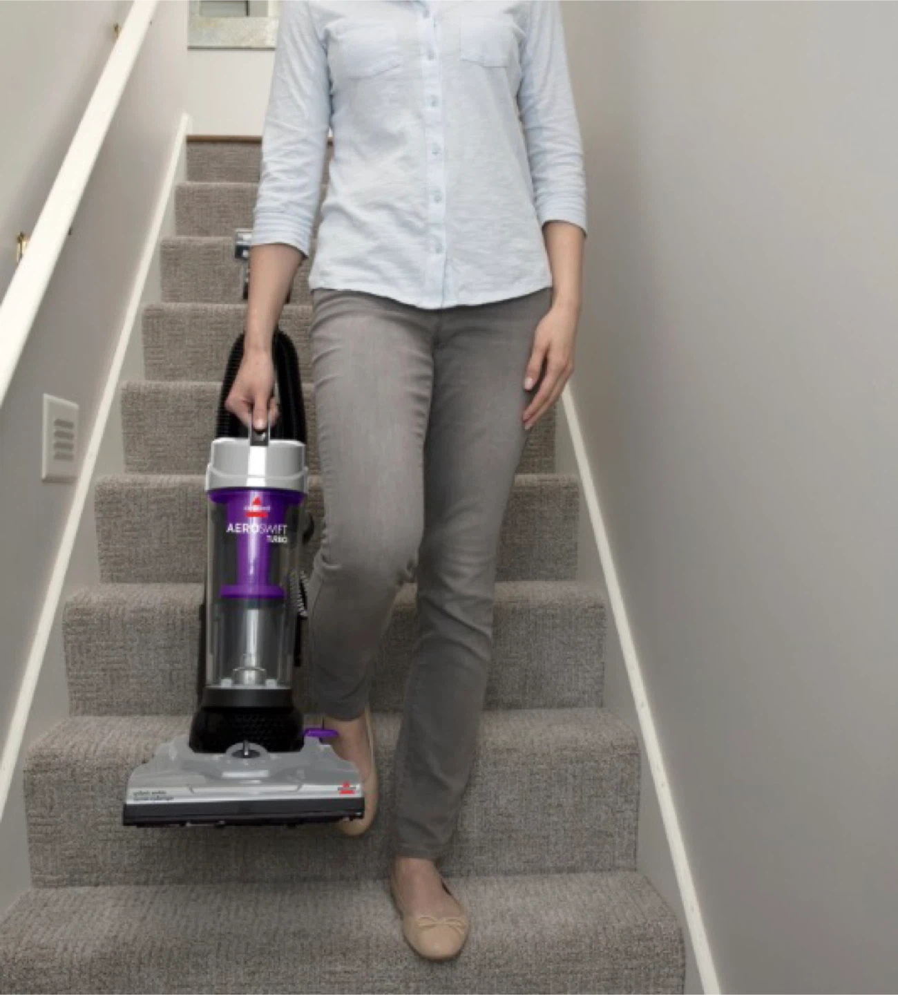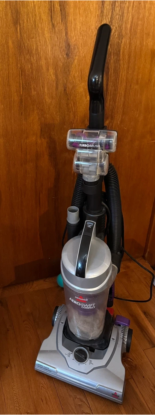 This Bissell 1808C AeroSwift is a compact upright bagless vacuum cleaner. It's lightweight and easy to manoeuvre, making cleaning simple. Includes a TurboBrush tool for upholstery and stairs.