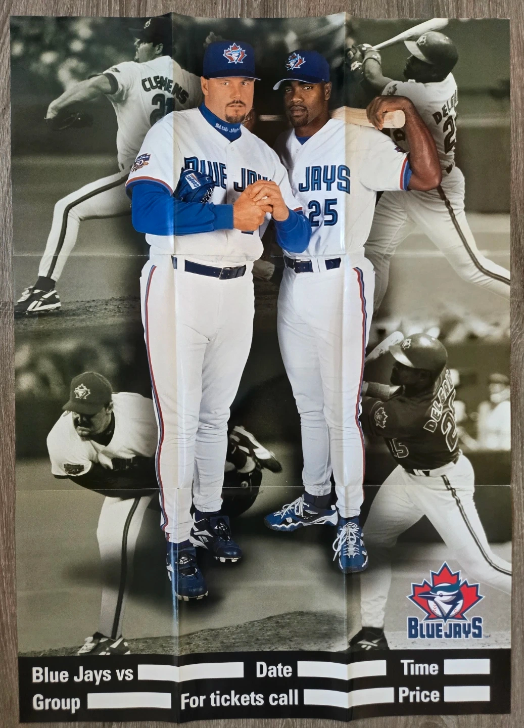 This lot includes a Very Rare 1983 Toronto Blue Jays Exhinition Era Yearbook, Great Condition Sleeved and a 'Great Moments in Blue Jays History' collectible Tin featuring Dave Stieb's no-hitter from 1990. Also includes a Rare 1997 Roger Clemens and Carlos Delgado Factory folded Promotional Poster, New Condition, Never Displayed. Note: Main Photo shows Factory folded poster and Full displayed poster 20" x 28".