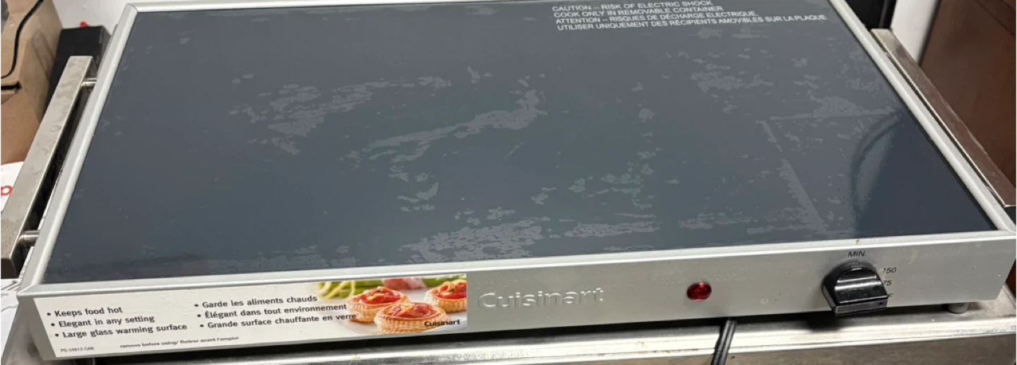 I have a Cuisinart warming tray and an APW Wyott food warmer for sale! Both are in good working condition. The Cuisinart warming tray features a large glass warming surface, and the APW Wyott is insulated to keep food warm for longer